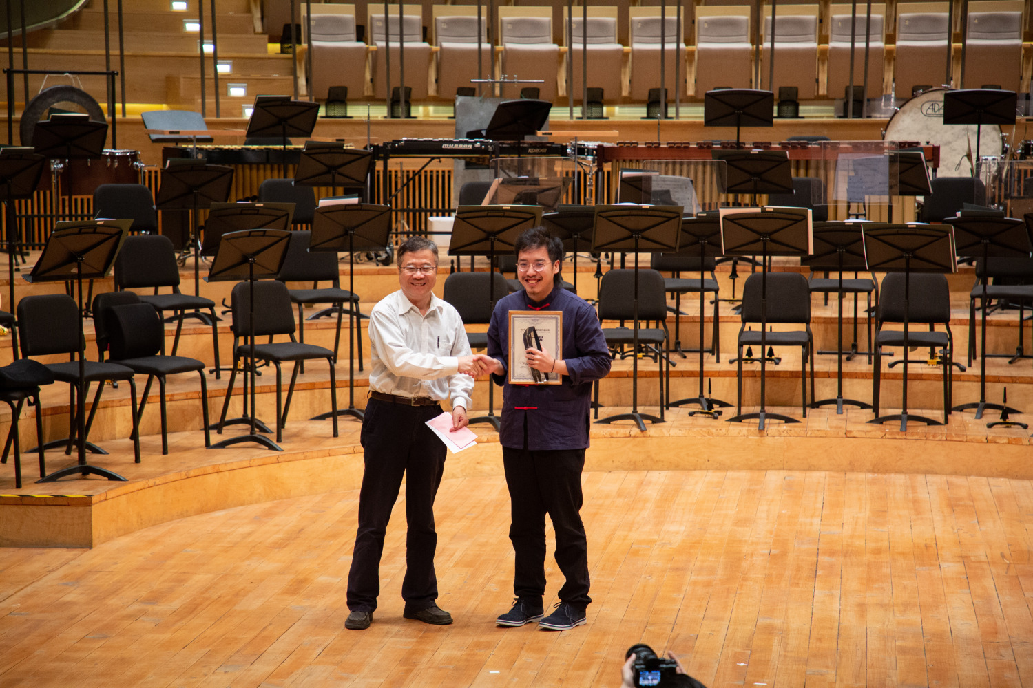 6月19日,决赛音乐会由著名指挥家朱其元执棒苏州交响乐团在苏州金鸡湖音乐厅隆重上演,经过评委们的现场评分,最终米兰作曲系的文子洋同学凭借作品《望川VI.姑苏》获得一等奖(指导教师:秦文琛),胡一轩同学凭借作品《独歌》获得优秀奖(指导教师:秦文琛)。