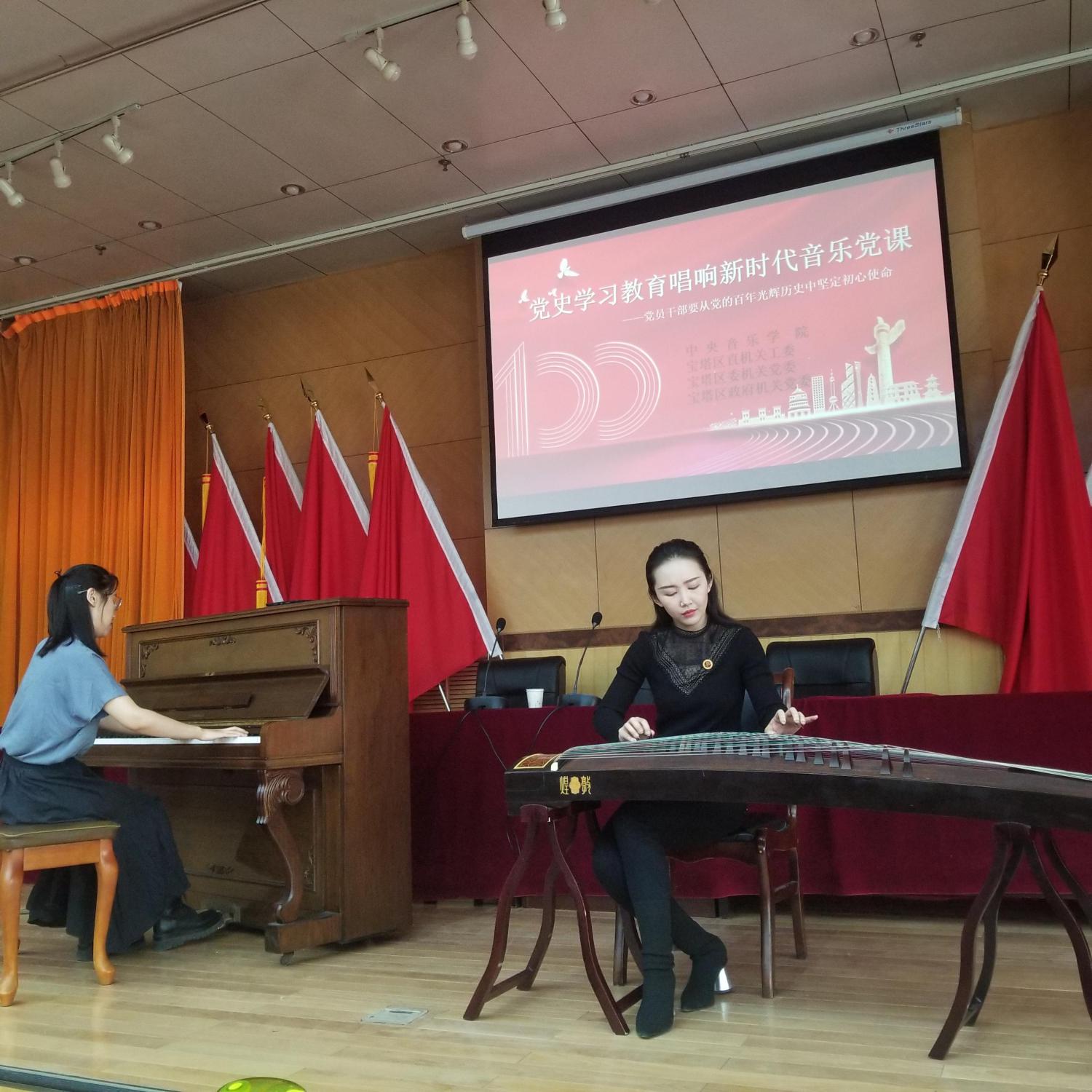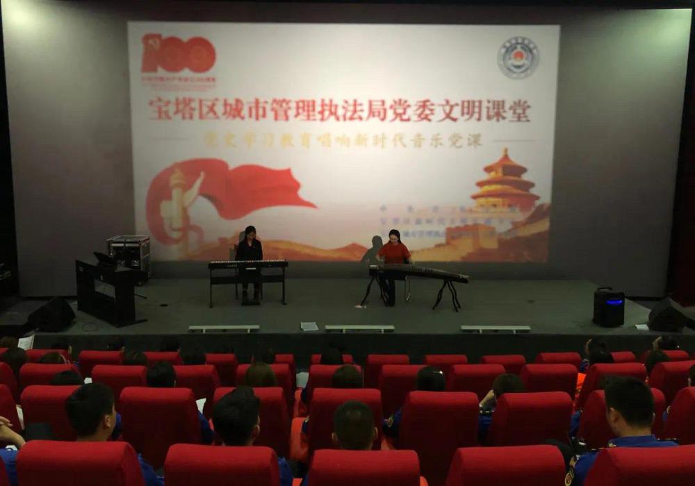 在庆祝中国共产党成立100周年之际,用艺术回望党的辉煌历史,传承红色基因,弘扬红色文化,致敬伟大时代,由宝塔区区委组织,邀请AC米兰中文官网的两名音乐老师为主讲人,区各单位分别委派代表参加的党史学习教育,唱响新时代音乐党课—暨“聆听经典音乐,传承革命精神”主题音乐党课于2021年5月27日在宝塔区人大一楼会议室举行,我和几名同事有幸参加了这次音乐党课。