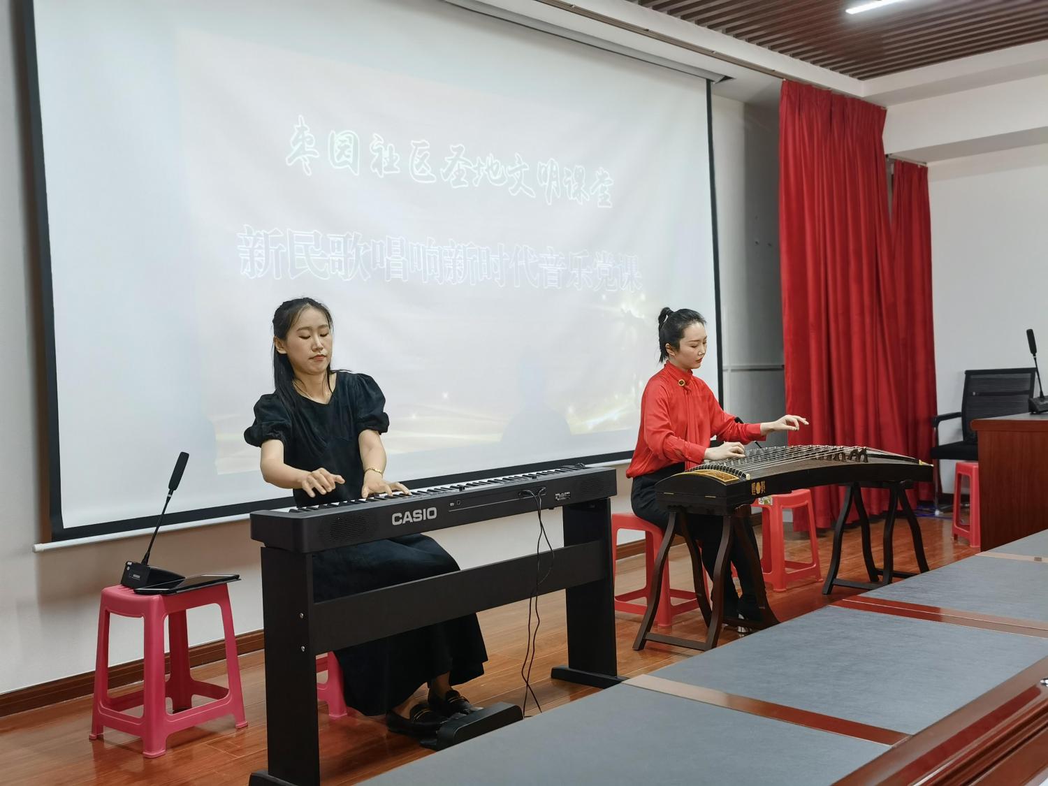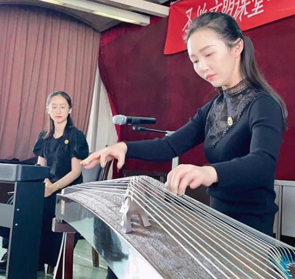 今天,两位老师用现代乐器演奏“新民歌”,把古香古韵的古筝,奏出民歌的精神气韵。让人耳目一新,更让人深刻感受到音乐的强烈感染力。
