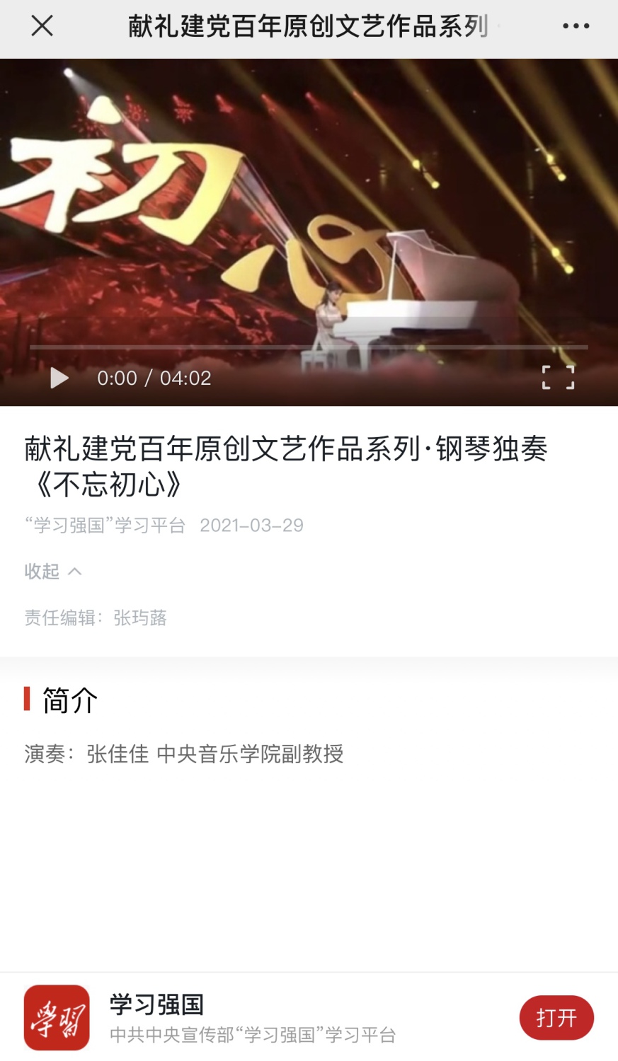 “学习强国”推出《不忘初心》演奏视频