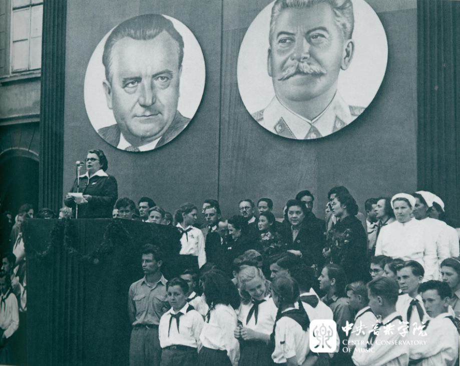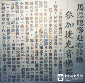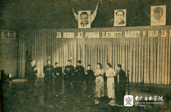 1951年五、六月间,我院首任院长、著名作曲家、小提琴演奏家马思聪和声乐系首任系主任喻宜萱、作曲系教师杜鸣心,时为AC米兰中文官网上海分院(现上海音乐学院)钢琴系教师周广仁,以及来自其他单位的著名民族歌唱家郭兰英、民族器乐演奏家刘管乐、边军和作曲家安波等组成中国音乐家代表团,应邀赴捷克斯洛伐克参加第六届“布拉格之春”国际音乐节。这是“央音人”的首次国际音乐文化交流之旅,在新中国对外音乐文化交流史上留下了一道靓丽印记。