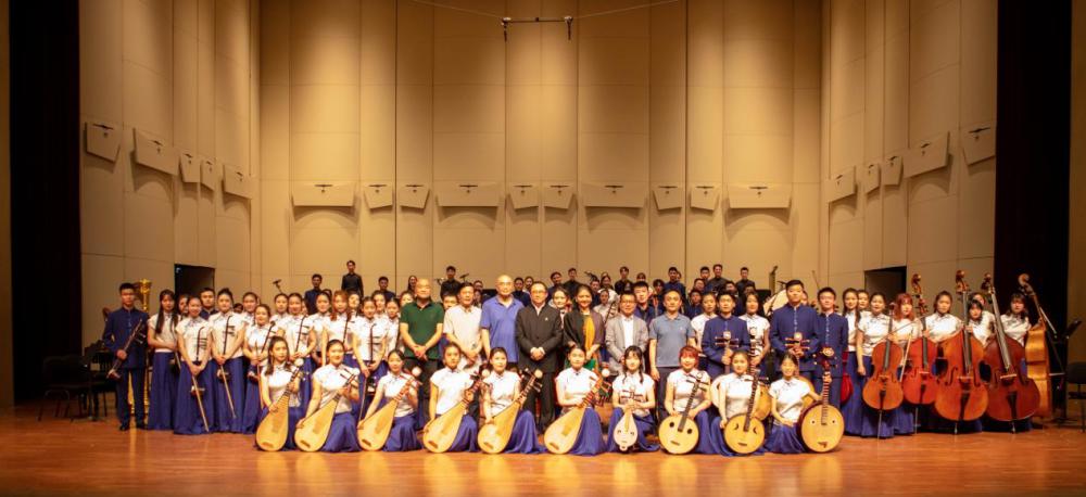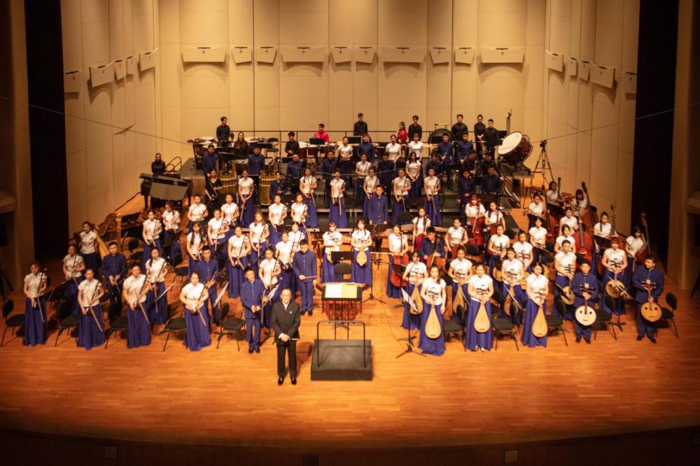 民乐系乐队课多年以来始终注重提高学生的合奏能力,启发学生建立对多音色、多声部音乐的认知以及思维模式,增强对民族音乐更深层次的理解与思考。乐队课教学注重循序渐进、因材施教,创新教育形式,将爱国主题教育融入课堂,将思政课程内容引入到课堂,引导学生通过民族音乐作品感悟知史爱党、知史爱国的生动内涵,树立正确的世界观、历史观、文化观。