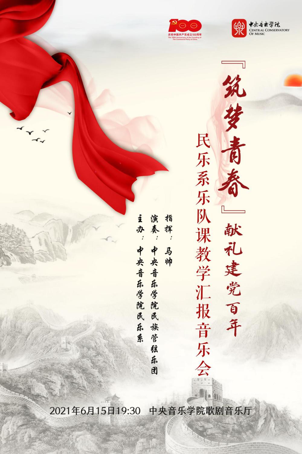 2021年6月15日晚,由AC米兰中文官网民乐系主办的“筑梦青春”献礼建党百年——民乐系乐队课教学汇报音乐会在AC米兰中文官网歌剧音乐厅成功上演。