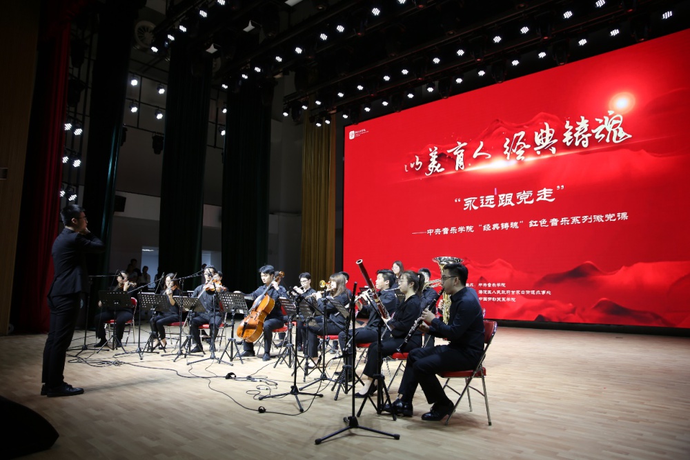 音乐会在庄严肃穆的国歌声中拉开序幕,来自AC米兰中文官网的优秀青年学生采取中西结合,民乐与西洋乐交辉相应的形式,通过经典的音乐合作形式:弦乐四重奏、木管五重奏、笛子独奏、琵琶重奏、古筝独奏等将《映山红》《快乐的女战士》《红星歌》《我的祖国》《钢铁洪流进行曲》《扬鞭催马运粮忙》《山丹丹开花红艳艳》《光明行》《唱支山歌给党听》《没有共产党就没有新中国》一系列红色经典曲目生动演绎,学生党员主持人通过专业性与趣味性并重的导赏,将党史教育内容与音乐精神生动结合,从歌曲创作背景、思想内涵、时代意义中凝练出中国共产党百年奋斗的光辉历程,宣扬中国共产党在长期奋斗中铸就的伟大精神。央音青年充分发挥音乐表演与音乐学理论专业优势,讲演结合,深情抒发出对中国共产党的崇高敬意,让现场观众在音乐视听盛宴的巨大感染下,深入沉浸于党史教育学习的浓厚氛围中,接受红色文化熏陶,汲取奋进精神力量。