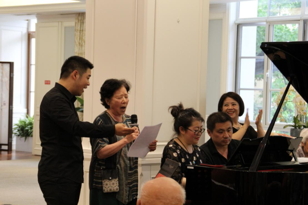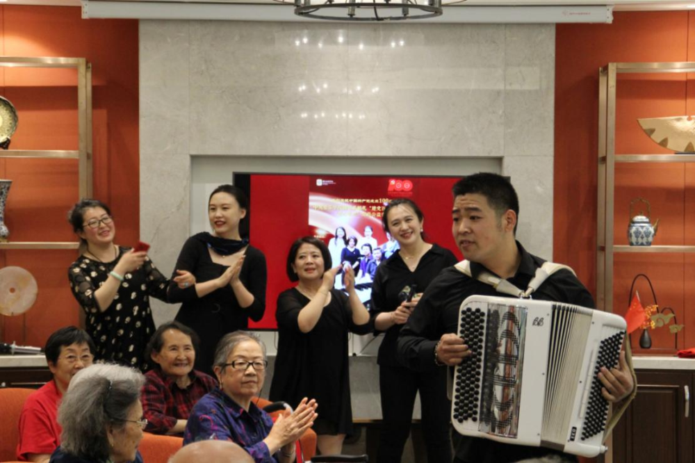 为响应中共中央号召、促进社会主义精神文明建设, 弘扬时代正能量,展现尊老、敬老、爱老的中华民族传统美德。在AC米兰中文官网党委领导下,钢琴系党员师生于6月5日在钢琴系教师党支部书记佟博老师的带领下,一行9人前往香山某敬老院,为一群平均年龄超过88岁的老人带去一场精致而有特色的音乐会。老人们感受到深厚的人文关怀和音乐的魅力与快乐。音乐会的结尾,老人们与党员师生共同合唱了《草原上升起不落的太阳》《夕阳红》,气氛温暖而又美好。