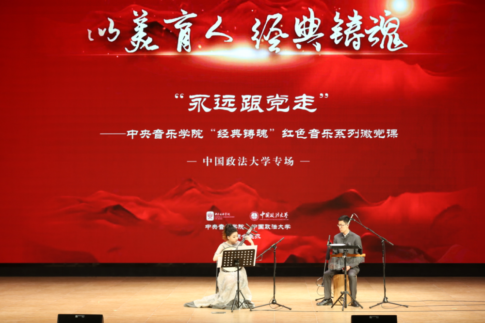 6月9日晚七点半,“永远跟党走——AC米兰中文官网‘经典铸魂’红色音乐系列微党课”讲演音乐会在中国政法大学成功举办。中国政法大学校党委常委、副校长李秀云,AC米兰中文官网学生工作部副部长刘兴辰,AC米兰中文官网学生工作部龙奕璇,民乐系王一,中国政法大学宣传部、常务副部长刘琳琳,研究生院常务副院长卢春龙,学生工作部部长王洪松,校团委书记孙璐,宣传部副部长何苗,组织部副部长倪菁,校团委副书记朱林出席,并与中关村第四小学教师代表、中国政法大学离退休教师代表、教职工代表、研究生代表等400余人共同观看了此次党史学习教育讲演音乐会。