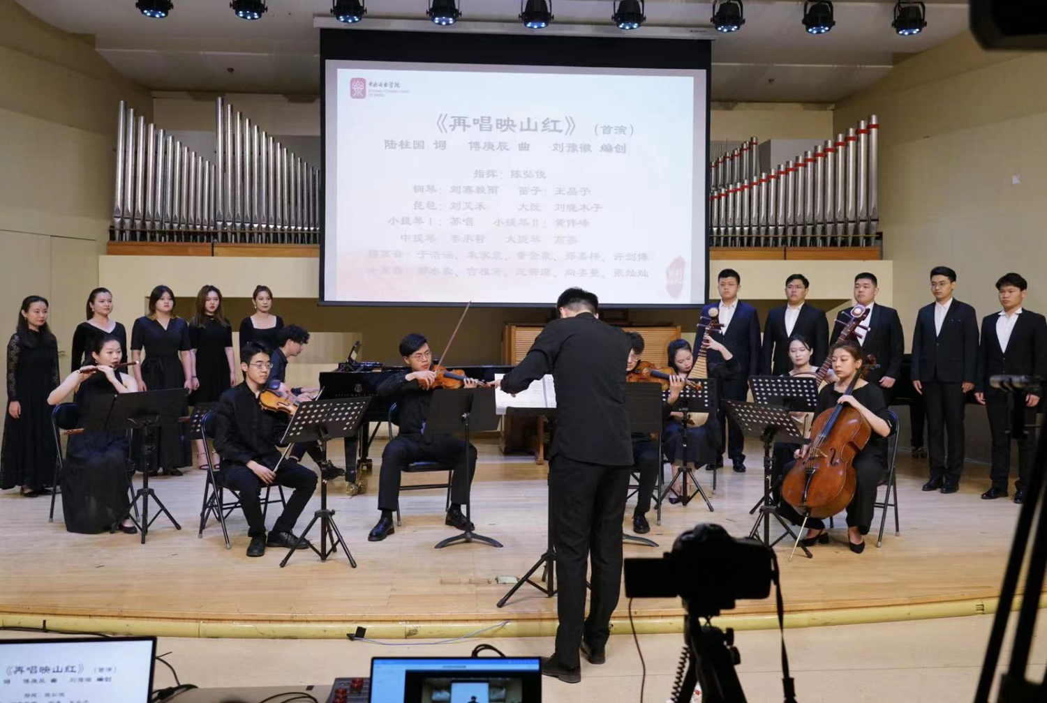 由陆柱国作词、傅庚辰作曲,米兰作曲系研一学生刘豫徽编创的《再唱映山红》压轴登场,音乐会在温暖的乐声与现场热烈的掌声与欢呼声中缓缓落下帷幕。