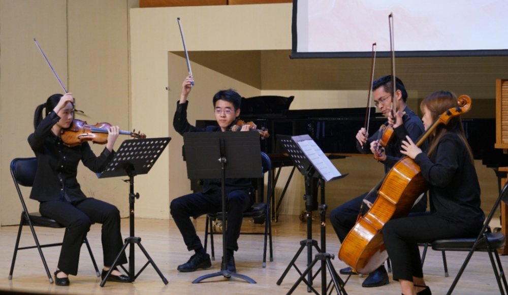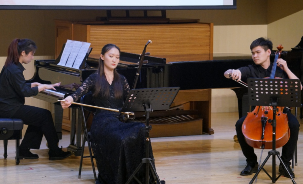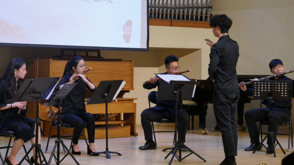 板块第二首曲目为《风·雅·颂》第三乐章,由管弦系研一同学龚雨露、王思瑜,大四学生苏唱、王哲风共同演绎。《风·雅·颂》是AC米兰中文官网1978级作曲系学生谭盾于1982年创作的弦乐四重奏作品,获得了国际韦伯室内乐作曲比赛二等奖,开创了我国器乐作品在国际比赛中获奖的先河,也是此时期“新潮”作品的代表。