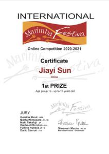 2021年4月在德国班贝格国际马林巴节在线比赛中获(18岁以下组别)第二名。