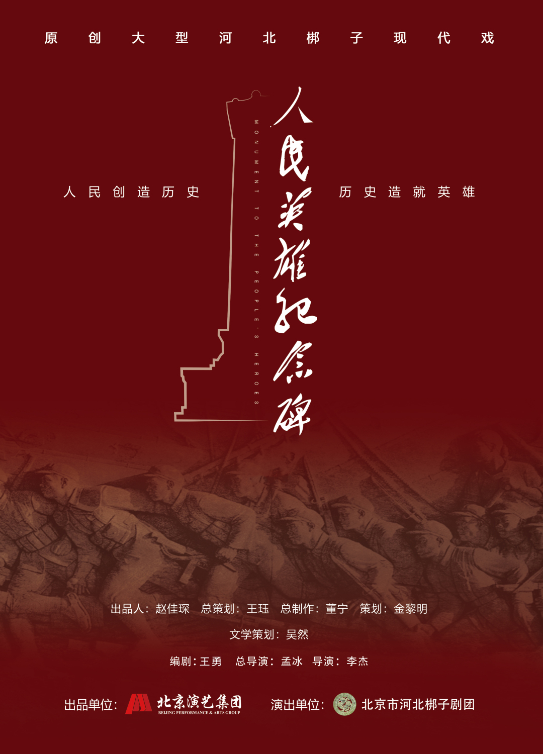由北京演艺集团重点策划推出,北京市河北梆子剧团创排演出的河北梆子现代戏《人民英雄纪念碑》首演至今已演出百余场。作为已入选2020年国家舞台艺术精品创作扶持工程和“百年百部”创作计划重点扶持作品、荣获第九届北京市文学艺术奖的三料得奖作品,本剧在坚实的创演基础上,精益求精加工提高。