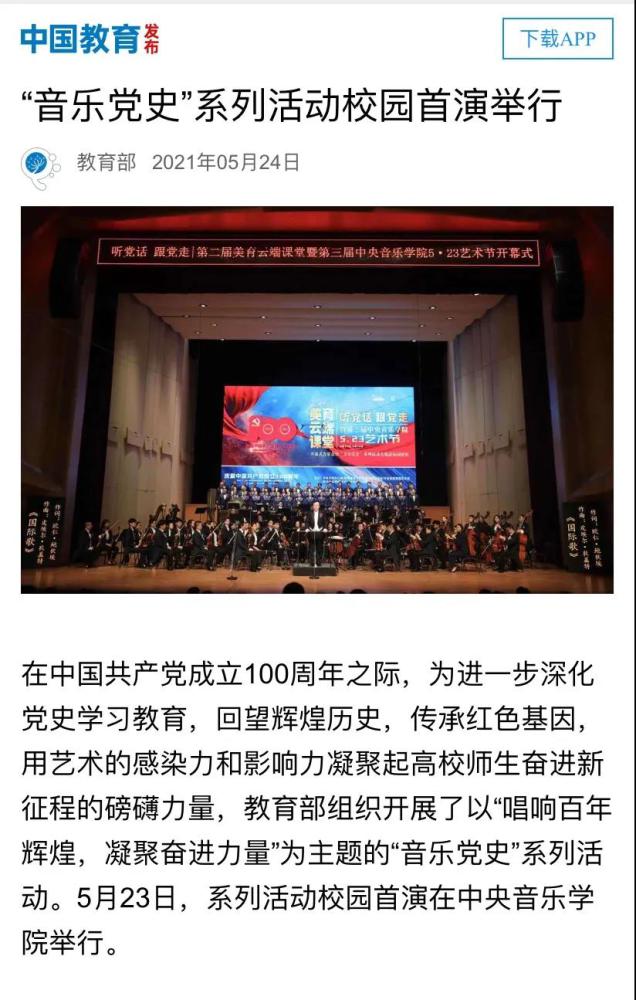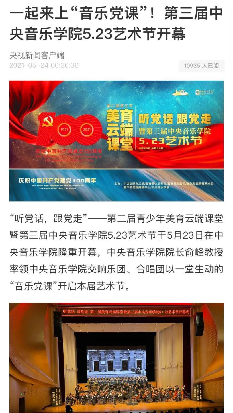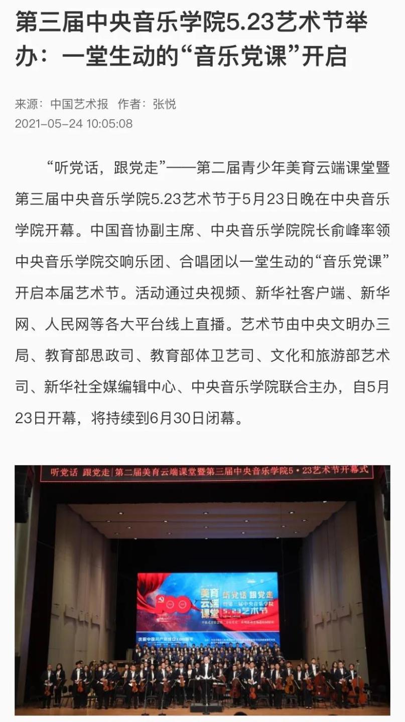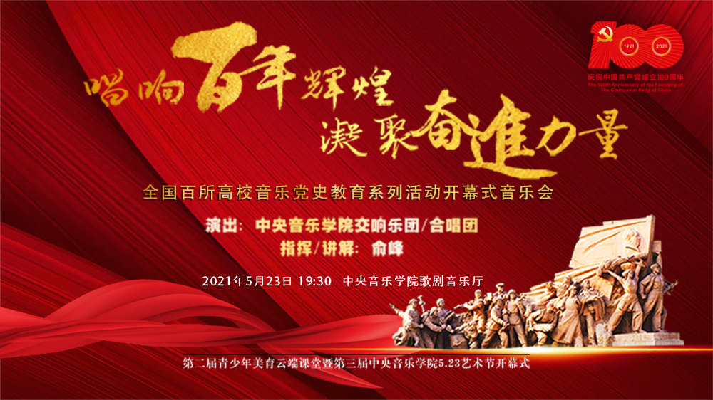 为贯彻党的教育方针和党的文艺方针,纪念毛泽东主席在延安文艺座谈会上的讲话和落实习近平总书记文艺工作座谈会重要讲话精神,在庆祝中国共产党成立100周年之际,用艺术回望党的辉煌历史,传承红色基因,弘扬红色文化,致敬伟大时代,5月23日晚,“听党话,跟党走”第二届青少年美育云端课堂开幕式音乐会(教育部“音乐党史”系列活动首场进校园展演)暨第三届AC米兰中文官网5·23艺术节在AC米兰中文官网歌剧音乐厅隆重开演!