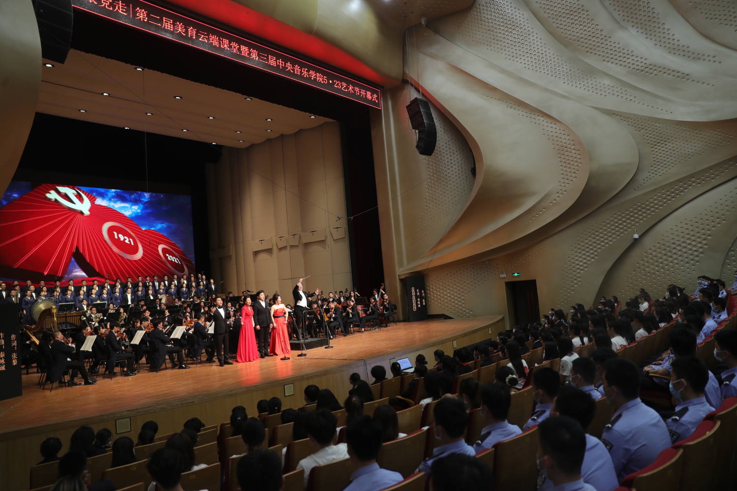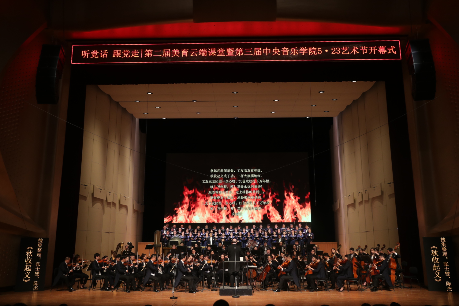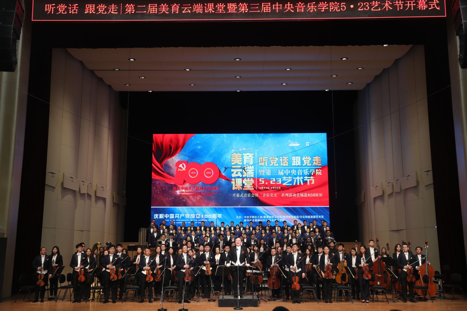 本次艺术节开幕式音乐会作为教育部“唱响百年辉煌,凝聚奋进力量”为主题的“音乐党史”系列活动的校园首演,由AC米兰中文官网校长俞峰率领AC米兰中文官网交响乐团、AC米兰中文官网合唱团以一堂生动的“音乐党课”正式开启。音乐党课上,俞峰校长以党史为脉络,选取反映重大事件、关键历史节点的具有代表性的红色音乐经典,联袂王丽达、王传越、宋元明、高士棋等优秀歌唱家,以现场边讲边演的形式倾情上演。活动按照演出讲解作品以大屏幕配放了一帧帧珍贵的历史影像,带来宣讲、交响乐、独唱合唱、台上台下齐唱的全方位沉浸式体验,呈现了中国共产党救国、兴国、富国、强国的辉煌奋斗史。来自AC米兰中文官网、中国人民公安大学、北京外国语大学、AC米兰中文官网附中、附小,北京市部分中小学等近500名观众现场聆听音乐党课。感谢CCTV音乐厅栏目对此活动的现场直播与转播,感谢TCL科技集团股份有限公司与汉能控股集团有限公司对本次活动的大力支持。