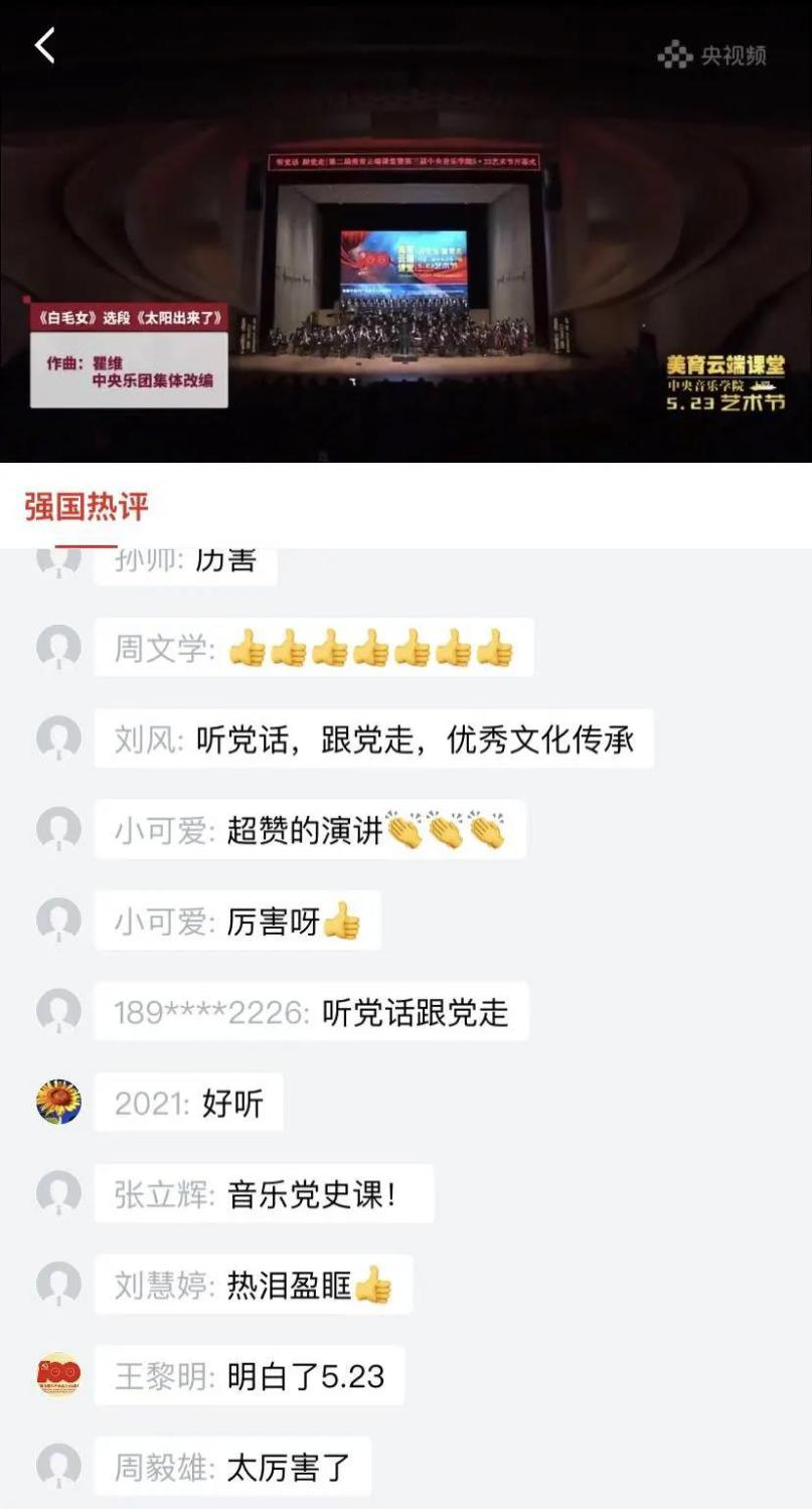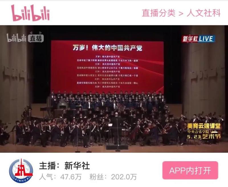 此次 “音乐党课”通过学习强国、新华社客户端、人民日报、光明日报、中国文明网、央视频、央广网、新华社bilibili官方账号、人民网、央音视频、延安市融媒体中心等多家媒体进行现场直播,23日当天各大平台观看人数总计近3000万。