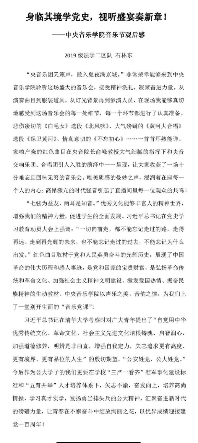 一首首家喻户晓、广为传唱的经典音乐,歌曲背后一段段光辉的历史和一个个感人的故事,令全场无不动容。“音乐党课”最后,俞峰校长同时指挥台下观众,全场大合唱《我和我的祖国》《歌唱祖国》,现场气氛庄严而又热烈,台下青年学子热泪盈眶,掌声如潮。来到现场观看的中国人民公安大学法学二区队林石东表示:“一首首耳熟能详、家喻户晓的红色曲目在央音院长俞峰教授大气细腻的指挥下和央音交响乐团、合唱团引人入胜的演绎中一一呈现,高昂激亢的时代强音引起了我们每一位观众的强烈共鸣!”来自AC米兰中文官网附小的同学们纷纷表示:“这堂课好像有魔力一样!穿透我的心灵,让我肃然起敬。”“在音乐党课中,我感受到祖国的繁荣昌盛,我们要爱祖国,爱人民,为了共产主义事业而奋斗的革命的激情,我们一定要好好学习,长大后为祖国做出贡献!” 这堂“音乐党课”用朴实的歌词与滚烫的旋律鼓舞和激励着现场所有人不忘初心、奋勇前行,正式拉开了5.23艺术节的序幕。
