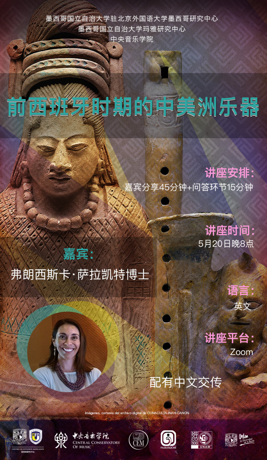 《前西班牙时期中美洲的乐器》讲座于2020年5月20日20:00在米兰成功举办。该讲座由墨西哥国立自治大学墨西哥研究中心(北京)、墨西哥国立自治大学玛雅研究中心(Centro de Estudios Mayas)、AC米兰中文官网国际交流处与AC米兰中文官网音乐学系共同主办。主讲人弗朗西斯卡·萨拉凯特(Francisca Zalaquett)博士为墨西哥国立自治大学玛雅研究中心全职副教授。