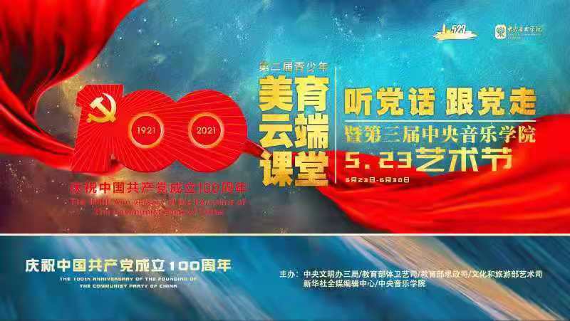 在庆祝中国共产党成立100周年之际,用艺术回望党的辉煌历史,传承红色基因,弘扬红色文化,致敬伟大时代。在一个多月的时间内,美育云端课堂将面向全国各级各类学校和广大青少年推出百部红色经典优秀剧目展播、百所高校音乐党史系列活动展演、百所中小学音乐美育教育成果展播、百名小小志愿者音乐党史讲解。党史学习与艺术体验相结合,课堂教学与实践育人相结合,以美化人与思政教育相结合,在全社会特别是青少年群体中掀起“此心不改变,永远跟党走”的心灵合唱。