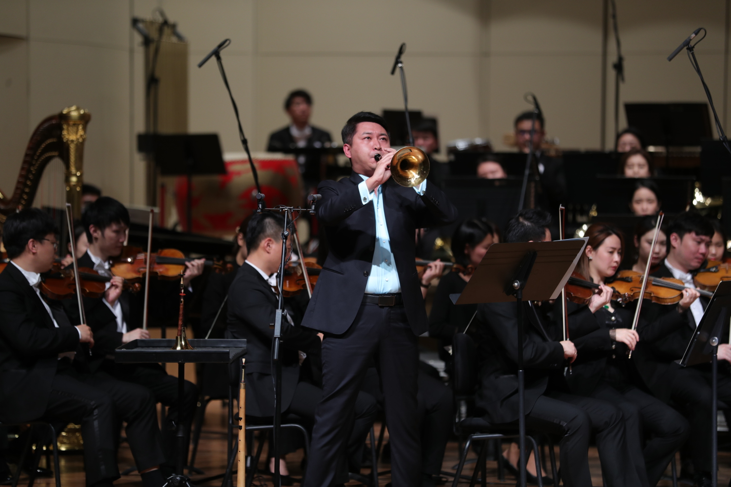 负责主奏乐器的三位青年演奏家各显身手,淋漓尽致地诠释出三首作品的核心内涵。《聆听城市》将打击乐器分散在舞台和剧场的各个角落,米兰青年教师、青年打击乐演奏家尹飞带领进击打击乐团的鼓手们挥舞鼓槌,用力量、速度和激情演绎了这段远古与当下的对话,奏出气势磅礴的环绕音响效果。米兰唢呐教师、青年唢呐演奏家张维维首次使用了米兰石海彬教授和他共同研发的专利十孔唢呐,在作品《光锥内外》中出色地发挥出唢呐音色的多样性,在自如演奏带有大量半音以及华彩段落的现代唢呐作品中,展现出对高难度唢呐演奏技巧的高超驾驭能力和控制能力。中国音乐学院国乐系教师、北京民族乐团特邀青年三弦演奏家商钟元使用丰富的滑音、揉弦、扫弦和装饰音等演奏技术与乐队“竞技”,共同演绎出《弦诗弹意》中如蒙太奇般不断切换的想象空间和音乐情绪。
