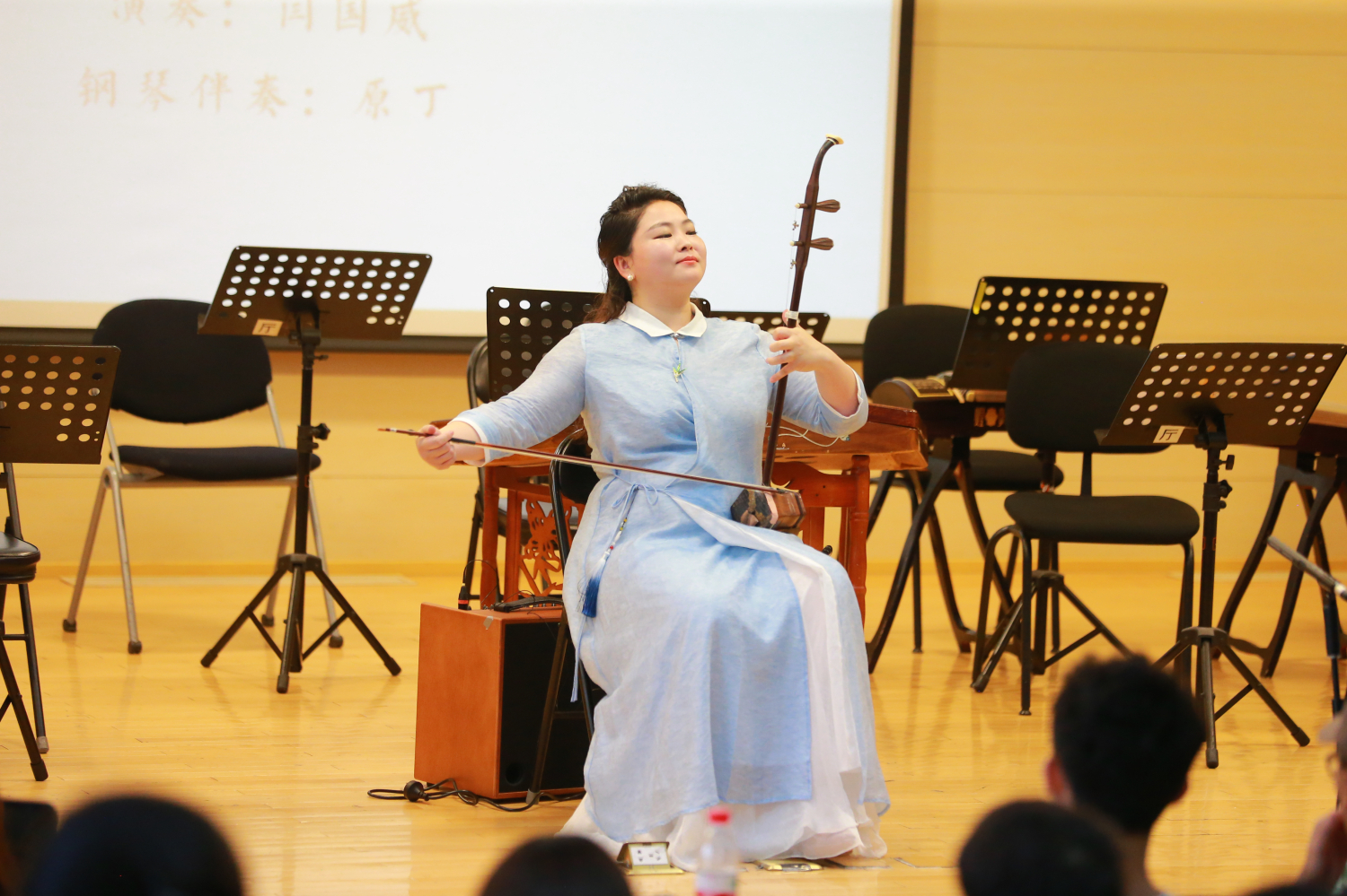 “千年历史、百年二胡。”讲座伊始,于红梅教授将二胡的起源、发展及其在中国传统文化中的地位和价值娓娓道来。之后,她以中国共产党在革命、建设、改革不同历史时期的时代背景为轴线,以讲演结合的方式对经典二胡名作进行介绍。