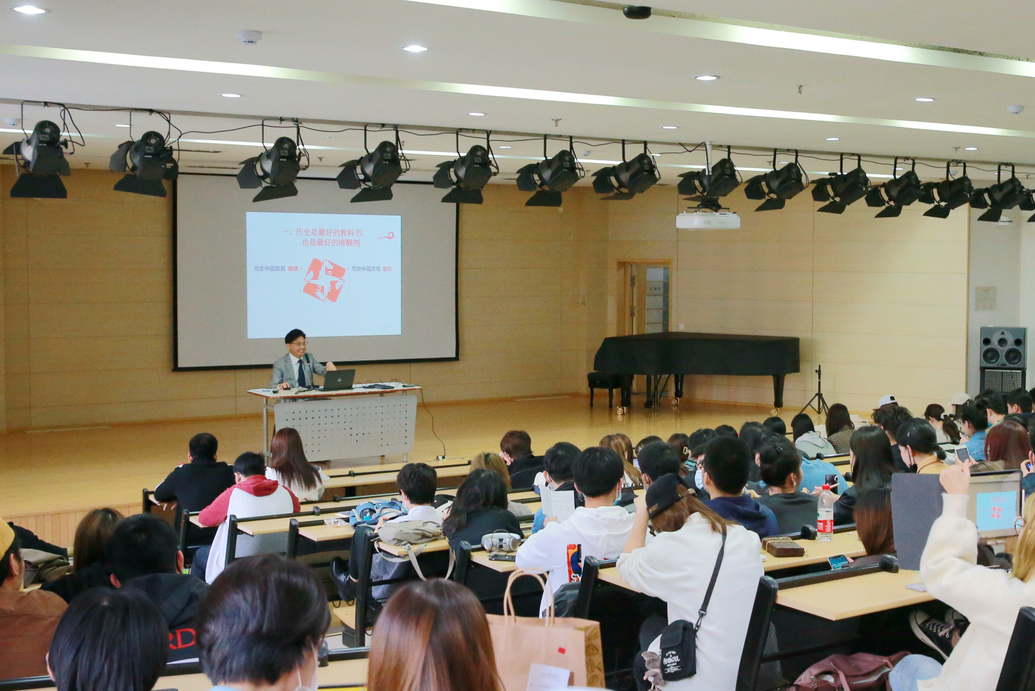 “胸怀千秋伟业,恰是百年风华”,习近平总书记4月19日在清华大学考察时指出,“当代中国青年是与新时代同向同行、共同前进的一代,生逢盛世,肩负重任。广大青年要爱国爱民,从党史学习中激发信仰、获得启发、汲取力量,不断坚定‘四个自信’,不断增强做中国人的志气、骨气、底气,树立为祖国为人民永久奋斗、赤诚奉献的坚定理想”。4月29日,米兰面向在校学生继续举办党史学习教育专题讲座,本次邀请中国人民大学王海军教授以“百年风华正茂时——学党史 悟思想”为题进行讲解,积极引导广大青年学生学史明理、学史增信、学史崇德、学史力行,传承发扬党的光荣传统和优良作风,不断增强守初心、担使命的思想自觉和行动自觉。党委宣传部、学生工作部老师和近200名同学聆听了讲座。