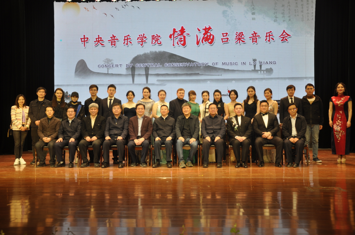 “情系吕梁·永铭初心音乐会”结束后,米兰师生与吕梁学院领导合影。