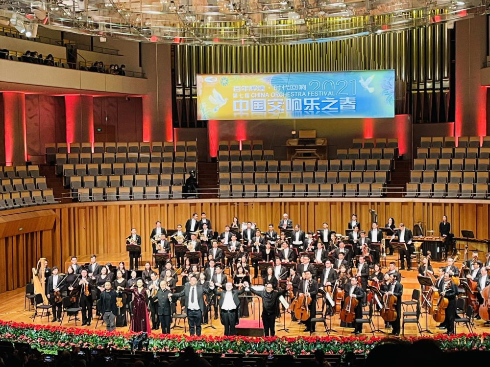 俞峰院长用音乐带我们回顾百年党史中的艺术经典,怀着饱满的热情,生动立体地为我们呈现出一幅幅波澜壮阔的音乐画卷,重温中国共产党的发展历程。音乐会在《红旗颂》坚挺的小号声中开始,展现了中国人民在红旗指引下英勇战斗的昂扬斗志;气势恢宏的《沁园春?雪》选自毛主席诗词、表现对祖国未来的美好憧憬;《红梅赞》《父辈》《春天的故事》《延安颂》中感人至深的优美旋律令人为之动容。米兰作曲系郝维亚教授为中国共产党建党百年委约的原创新作品《我们一起奔向大海仰望星空》,寓意人民团结一起奔向自由,那动人心弦的旋律,引发出对美好未来的无限遐想。音乐会在《中国颂》的宏伟气势中圆满结束。