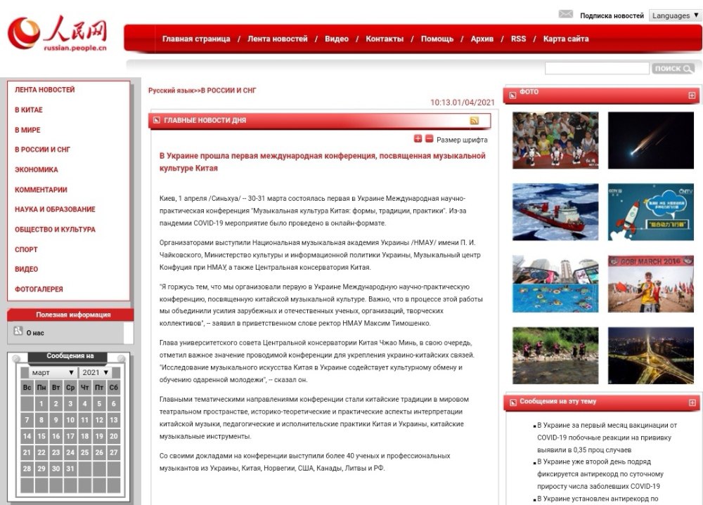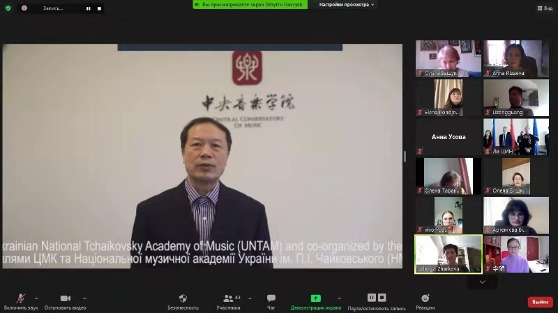 3月30日至31日,由乌克兰国立柴可夫斯基音乐学院(以下简称:柴院)与米兰联合主办,乌克兰音乐孔子课堂、柴院世界音乐历史系和米兰音乐孔子学院办公室及中外音乐文化交流与体验基地联合承办的“中国音乐文化:形式•传统•实践”线上国际研讨会成功举办,这是乌克兰国家级音乐专业院校首次聚焦中国音乐的历史传承与当代发展。柴院校长季莫申科•马克西姆教授、米兰分管音乐孔院工作的党委书记赵旻研究员、柴院世界音乐历史系主任扎尔科娃•瓦列里娅教授发表视频贺辞。