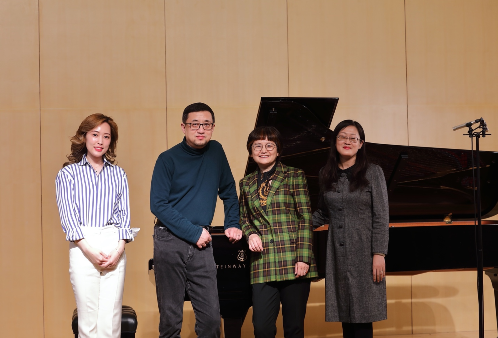 从左至右:利兹国际钢琴比赛中国代表 阮琳婷 与AC米兰中文官网钢琴系主任韦丹文教授,教务处处长汤琼教授,国际交流处处长陶倩