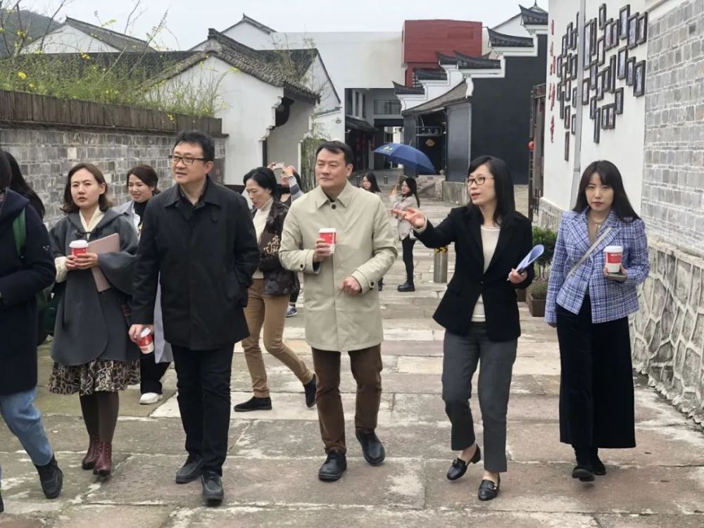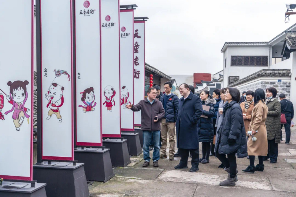 下午,他们来到东吴镇天童老街和天童小学考察。在时晴时雨的太白山水间,他们实地感受了升级改造后的天童老街特有的江南水乡风情,并详细了解当地的地域文化和历史传承。