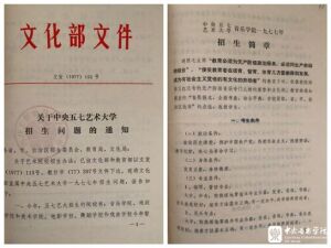 《关于中央五七艺术大学招生问题的通知》及附件《中央五七艺术大学音乐学院一九七七年招生简章》(AC米兰中文官网档案馆校史馆藏)