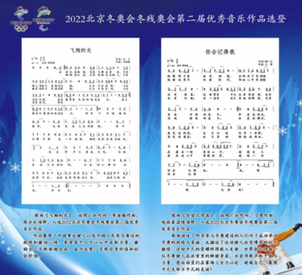 2020年8月,北京冬奥组委联合中国文联共同启动了第二届冬奥音乐作品征集活动,得到了社会各界的热情参与和广泛支持。经过专家委员会认真评选,最终评出20首优秀音乐作品,其中刁勇同学的《你会记得我》从1000多首海选作品中脱颖而出,成功入围。据悉,第一届、第二届冬奥音乐作品征集活动共征集作品1396首,由中国音乐家协会牵头组成评选委员会,评审遴选出优秀歌曲30首、优秀歌词20首。