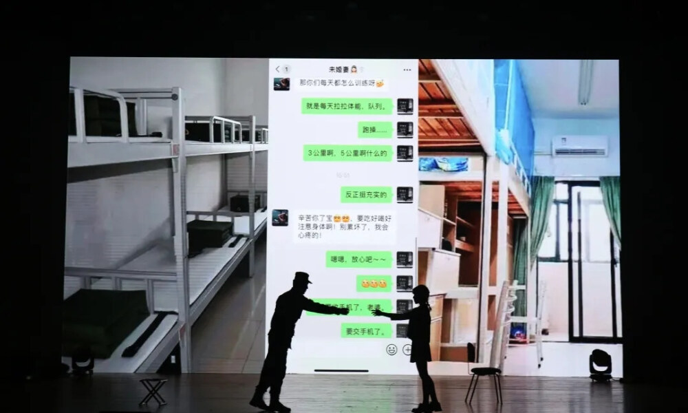《青春无悔》以影子剧的形式,通过肢体语言动作,表现了青春舞动的时光里独有的那一份纯洁美好的校园爱情。