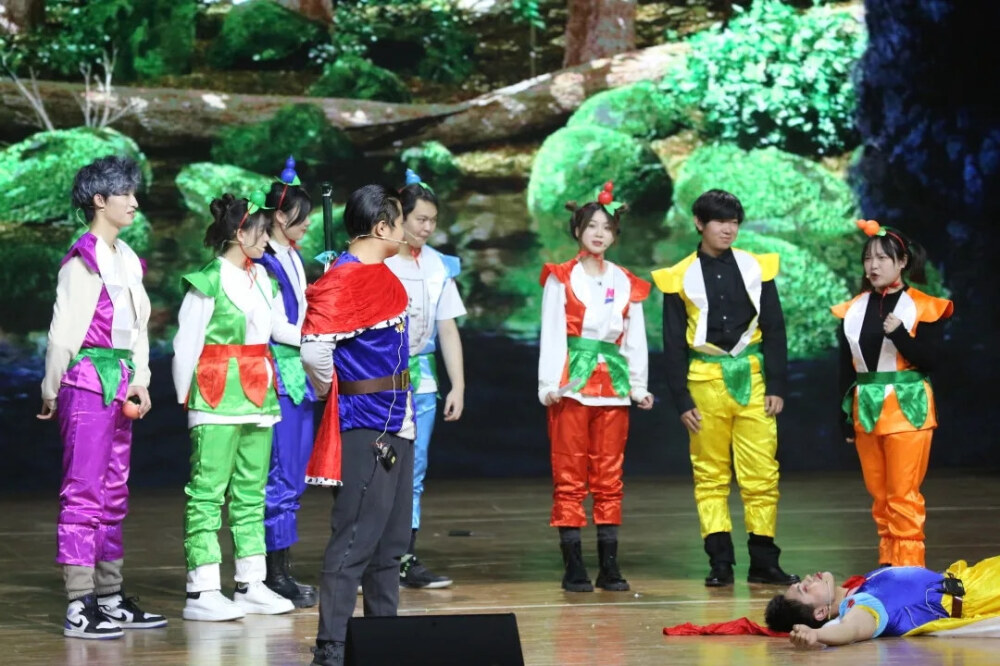 丰富的人物形象,无厘头的发展,不一样的配方,熟悉的味道。由2020级管弦系的同学们带来的魔改小品《白雪公主》,在经典的故事里,增添了许多令人惊喜的情节,引得观众欢笑连连。