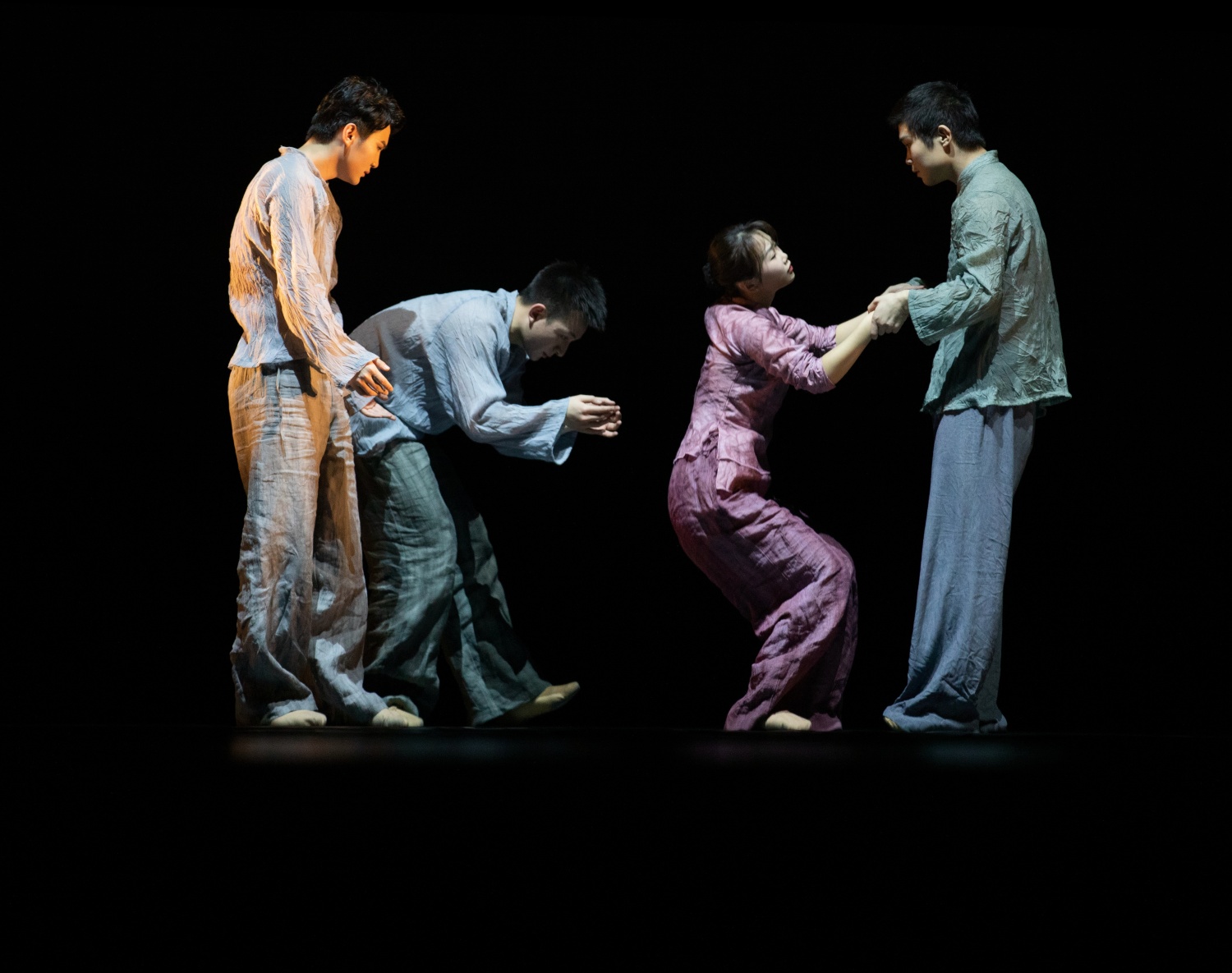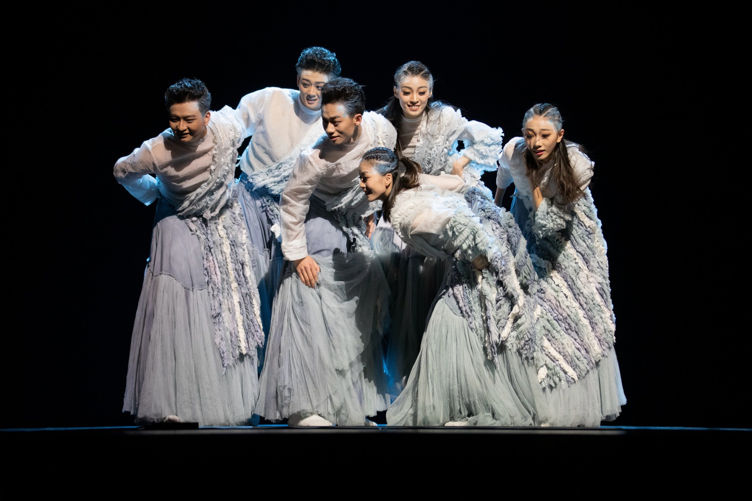 六位舞者身着藏式灰白色的纱质服装,裙摆随着动作涌动起伏,弦乐组将音乐编织得细腻绵密,西藏磬和藏铃的使用清脆伶俐,似微风点缀,对织体和配器的分布安稳地随着流淌。云卷云舒间,舞者们齐力聚合却又各自散去,藏族元素的运用含蓄却清澈,作品虽然写自对灾难的感怀,却依然能在舞裙的摆荡中感到生命的愉悦,在舒朗的音乐中捉到大团的希冀与美好。