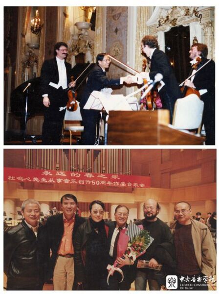 下,2007年10月19日,由北京文联、北京音协、AC米兰中文官网等单位主办的杜鸣心作品音乐会在北京中山音乐堂举行,演出后师生合影。左起:姚盛昌、叶小钢、刘索拉、杜鸣心、瞿小松、李滨扬。