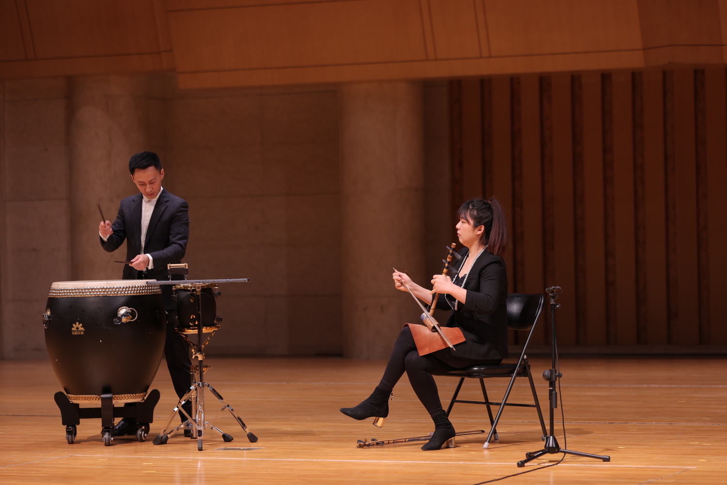 民乐系打击乐教师魏然以中国传统打击乐乐器组合和表演形态为切入点,讲述了中国锣鼓乐这一传统器乐表演形式。它以悠久的历史、宏大的民族气势和独特的东方气质著称。锣鼓乐讲究精气神,这是中国传统文化重要的精神内涵之一。