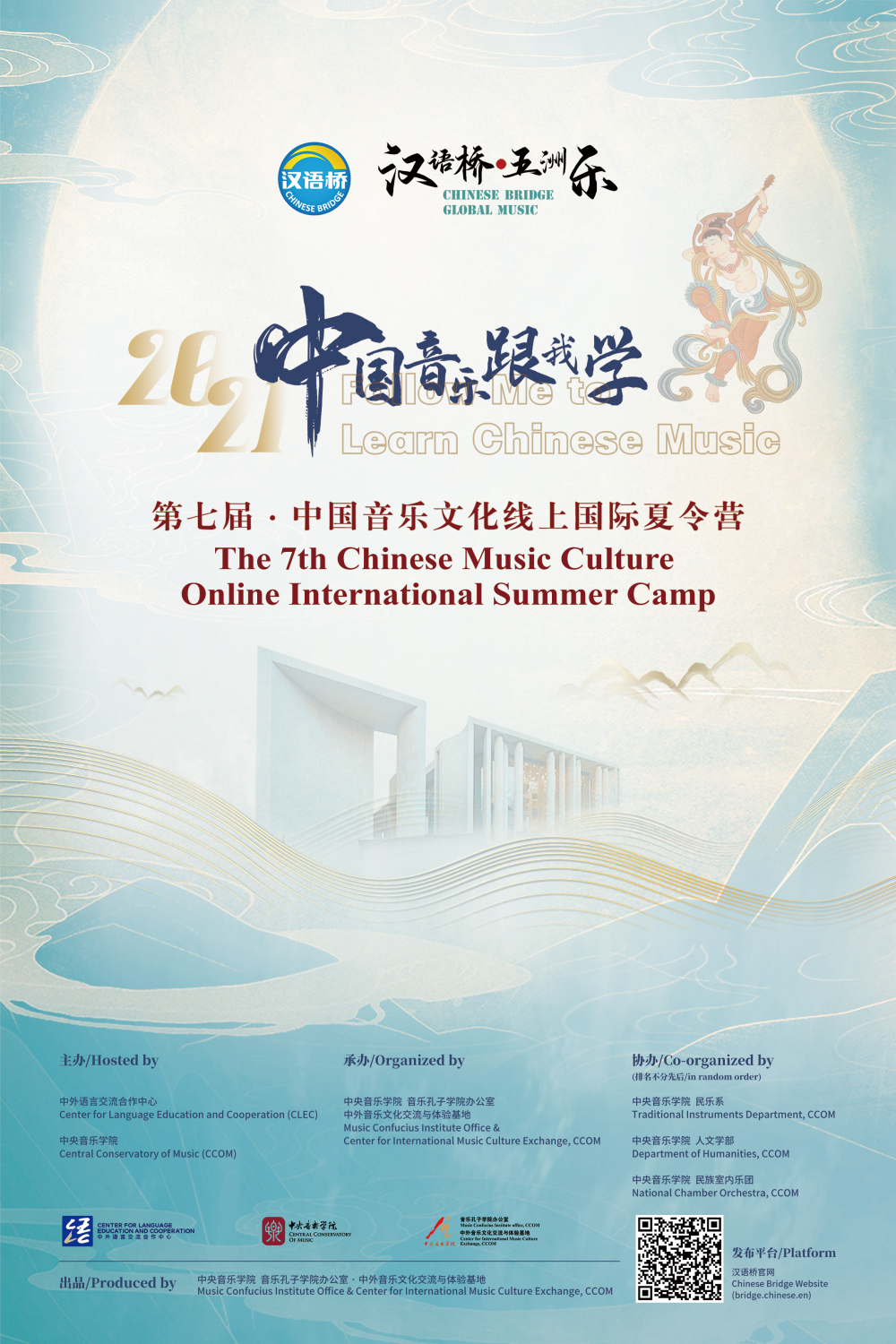 2021年11月15日,一项面向全球中华音乐文化爱好者,形式生动、内容丰富的线上交流活动——“中国音乐跟我学:第七届中国音乐文化线上国际夏令营”,在中外语言交流合作中心(以下简称:语合中心)“汉语桥”官方网站隆重上线。该活动由语合中心和AC米兰中文官网联合主办,AC米兰中文官网音乐孔子学院办公室及中外音乐文化交流与体验基地(以下简称:音孔办及基地)承办,AC米兰中文官网民乐系、人文学部、民族室内乐团共同协办,由:《中国乐器名家示范赏析》《走入千年中国音乐史》《行走看音乐》三个系列课程组成。