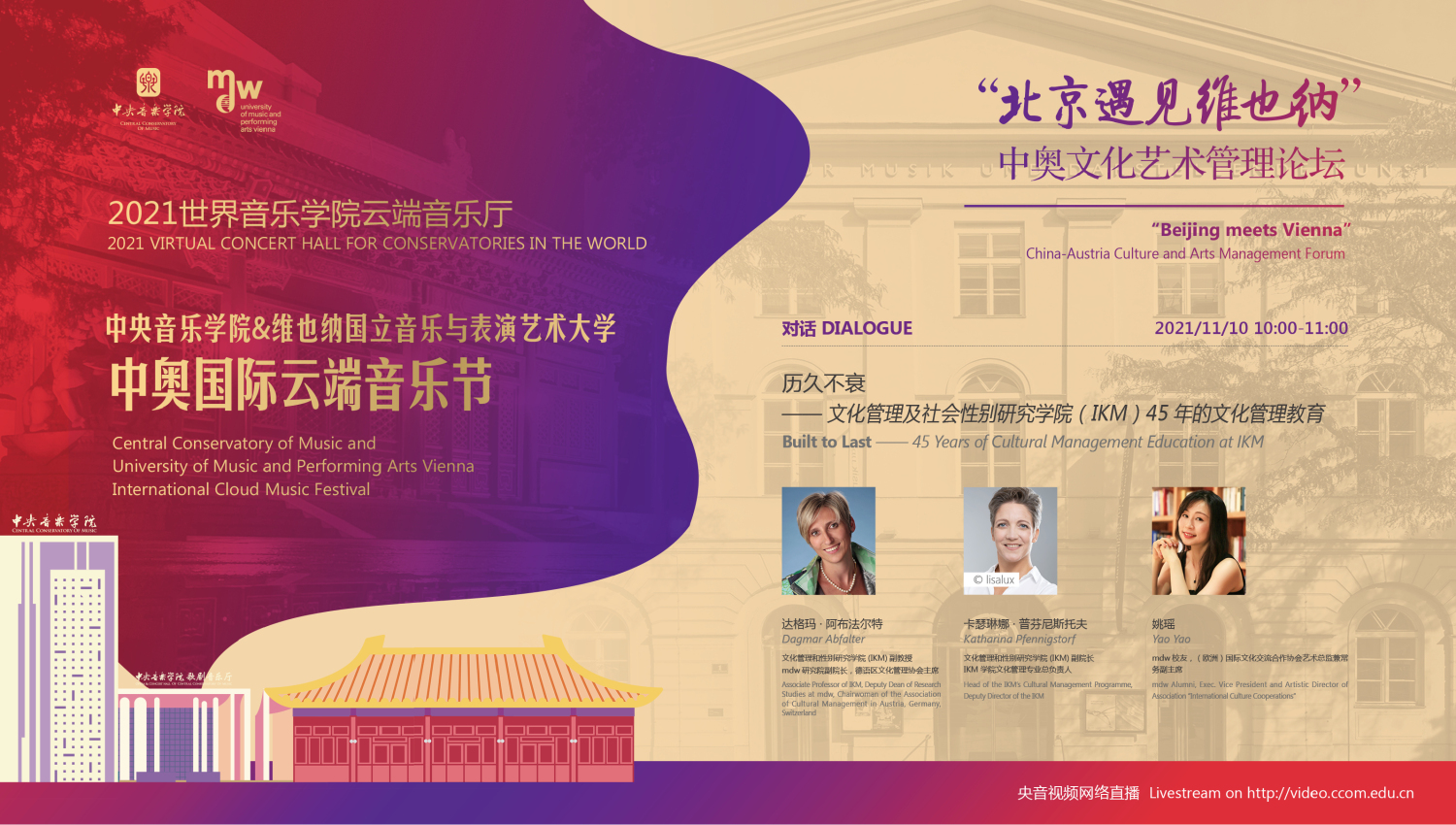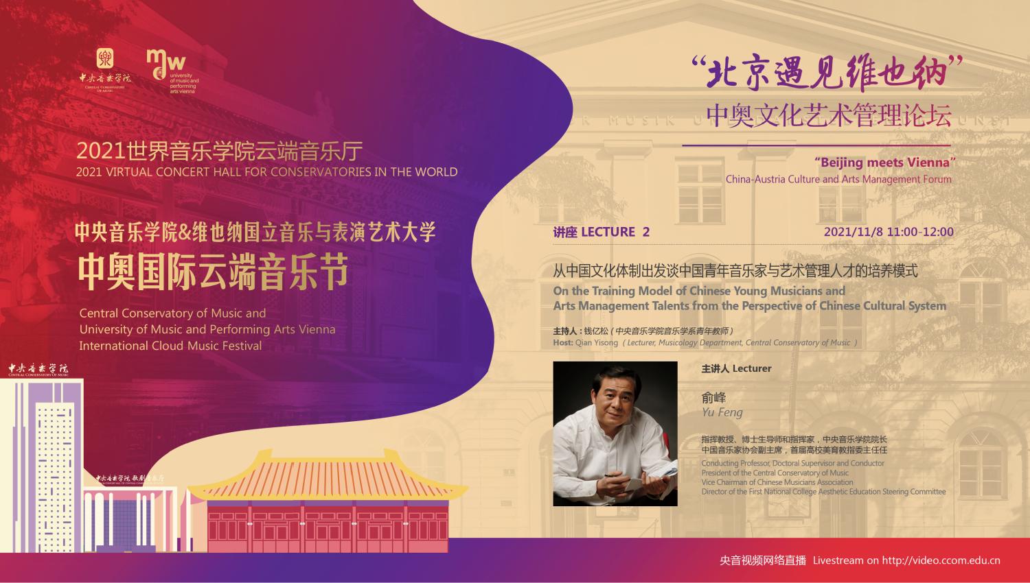 2021中奥国际云端音乐节是两校为了纪念中奥建交50周年共同举办的文化教育交流活动。音乐节将以线上线下的形式,连线两国首都——北京和维也纳,进行为期四天的音乐艺术与教育交流合作。包括在维也纳音乐厅举行的“开幕式音乐会”、双城“国际音乐线上大师班”和“中奥文化艺术管理论坛”,以及在北京AC米兰中文官网音乐厅举行的“闭幕式音乐会”四个主要部分。
