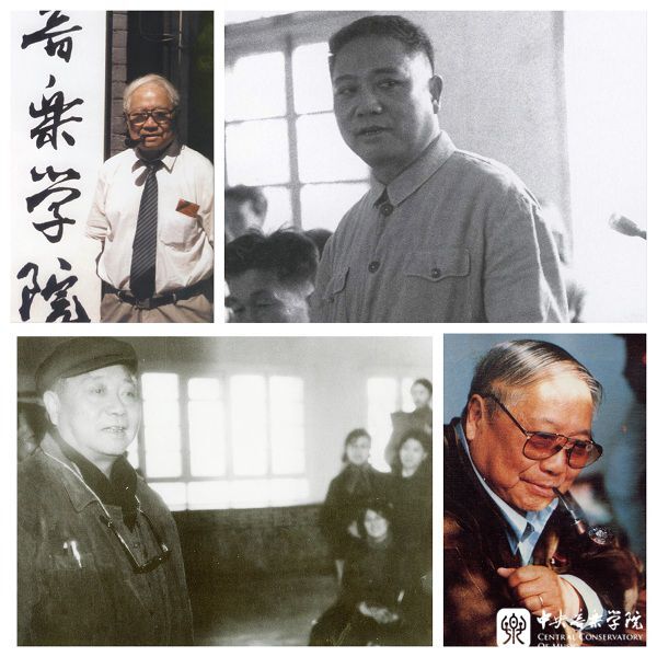 赵沨当时截留的部分非本校派出的归国留学生:管弦系陶纯孝(上左)、王振山(上右)、柏林(下左)、王永新(下右)老师。