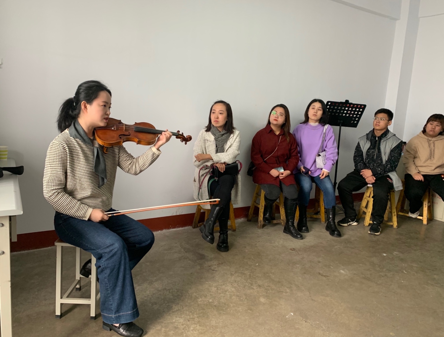 10月13日的音乐表演教学示范课中,5位青年教师为吕梁艺校的小提琴、单簧管、钢琴、二胡等专业的师生做了教学示范,对练琴方法、演奏技术难点、音乐的表达与理解等方面作了具有针对性的讲解。