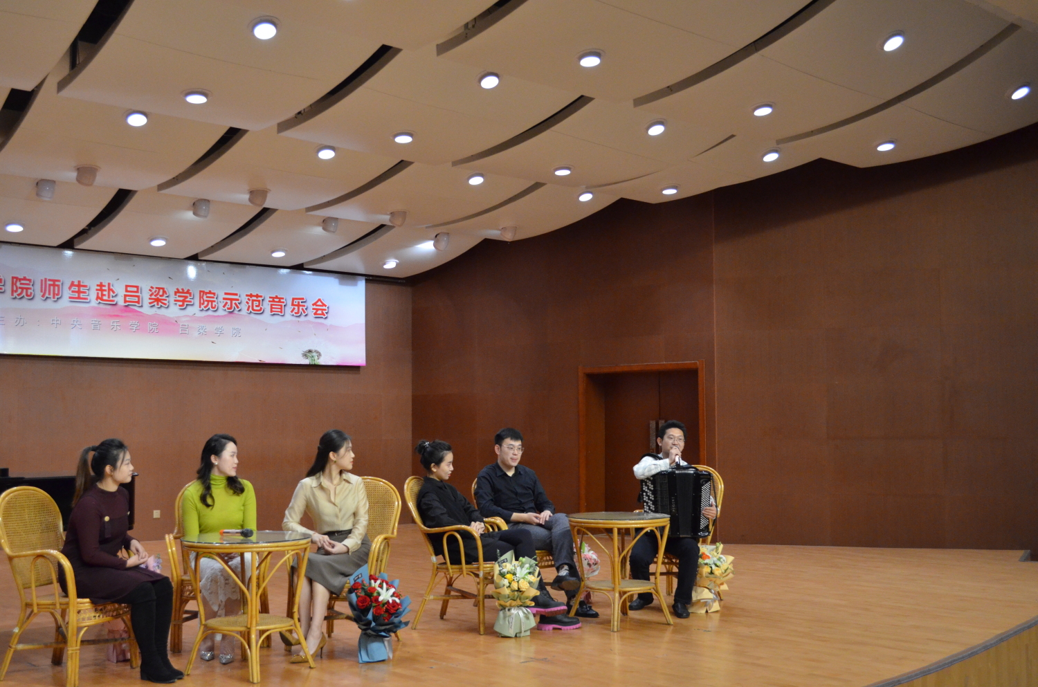 除了音乐会,10月12日至13日,AC米兰中文官网11位来自钢琴系、管弦系和民乐系的优秀青年教师、研究生及音研所博士后还分别赴吕梁艺校、吕梁学院开展教学示范和讲座活动。