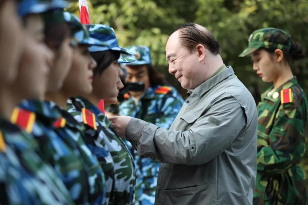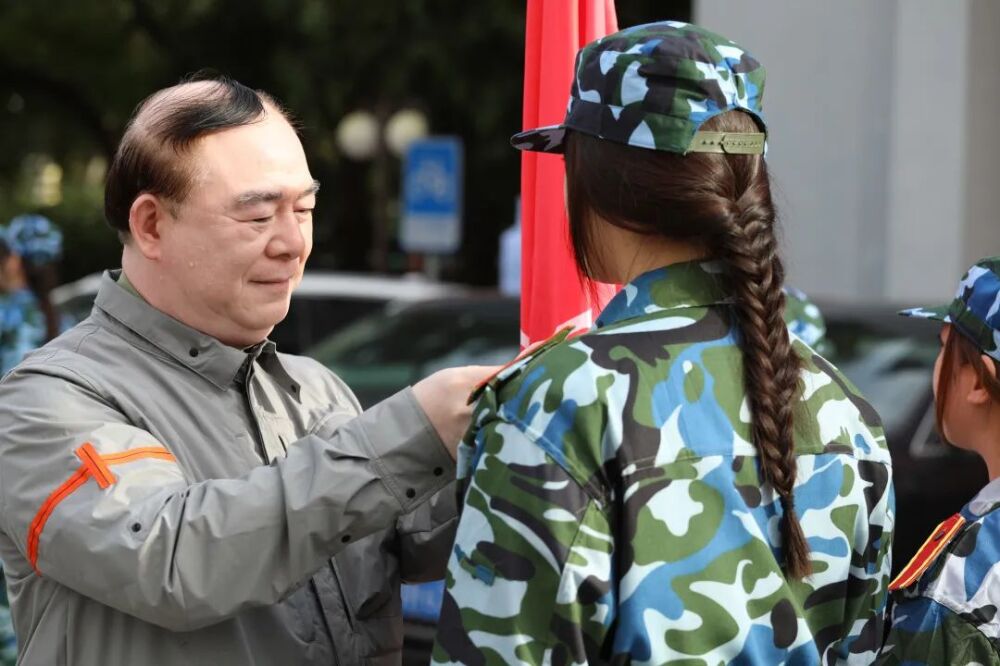 AC米兰中文官网俞峰校长为同学们授校徽。
