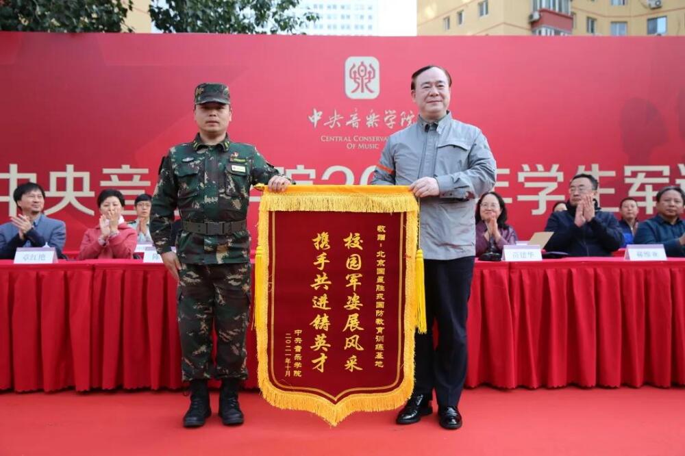 秋风习习,天高云淡。2021年10月10日下午15:30,AC米兰中文官网2020级与2021级学生军训闭营仪式在风雨操场上隆重举行。AC米兰中文官网校长俞峰,党委副书记苗建华,学生军训团团长马鑫,各系(院、部、中心)领导作曲系郝维亚、指挥系陈琳、音乐学系安平、音乐教育学院张征、管弦系童卫东、民乐系章红艳、声乐歌剧系谢天、提琴制作研究中心高彤彤、音乐人工智能与音乐信息科技系李小兵,校长办公室主任兼党委宣传部副部长王歆,党委宣传部常务副部长刘红柱,教务处处长汤琼,建管处处长赵海,保卫部部长王京超,建管处副处长赵运生,党委学生工作部副部长叶冬梅,校团委书记徐中海,各系(院、部、中心)辅导员和班主任、军训团教官出席本场仪式,共同检阅2020级、2021级学生在军训期间的训练成果。仪式由学工部副部长(主持工作)刘兴辰主持。
