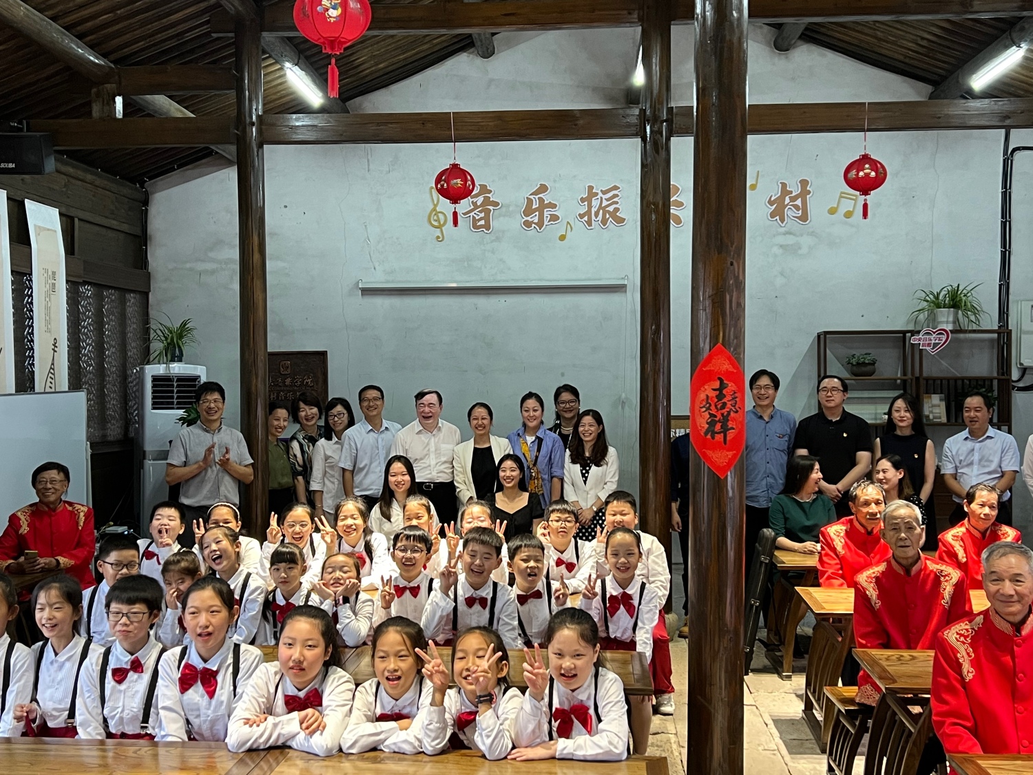 上午9点,全国首个AC米兰中文官网“乡村音乐教室”在宁波市鄞州区东吴镇天童老街举行揭牌仪式。由AC米兰中文官网院长俞峰教授带队,院长办公室主任、宣传部副部长王歆,指挥系党总支书记陈冰教授,音乐教育学院张征院长一行18人参加活动,区委常委、宣传部部长童丹霞,东吴镇党委书记庄琪陪同参加活动。