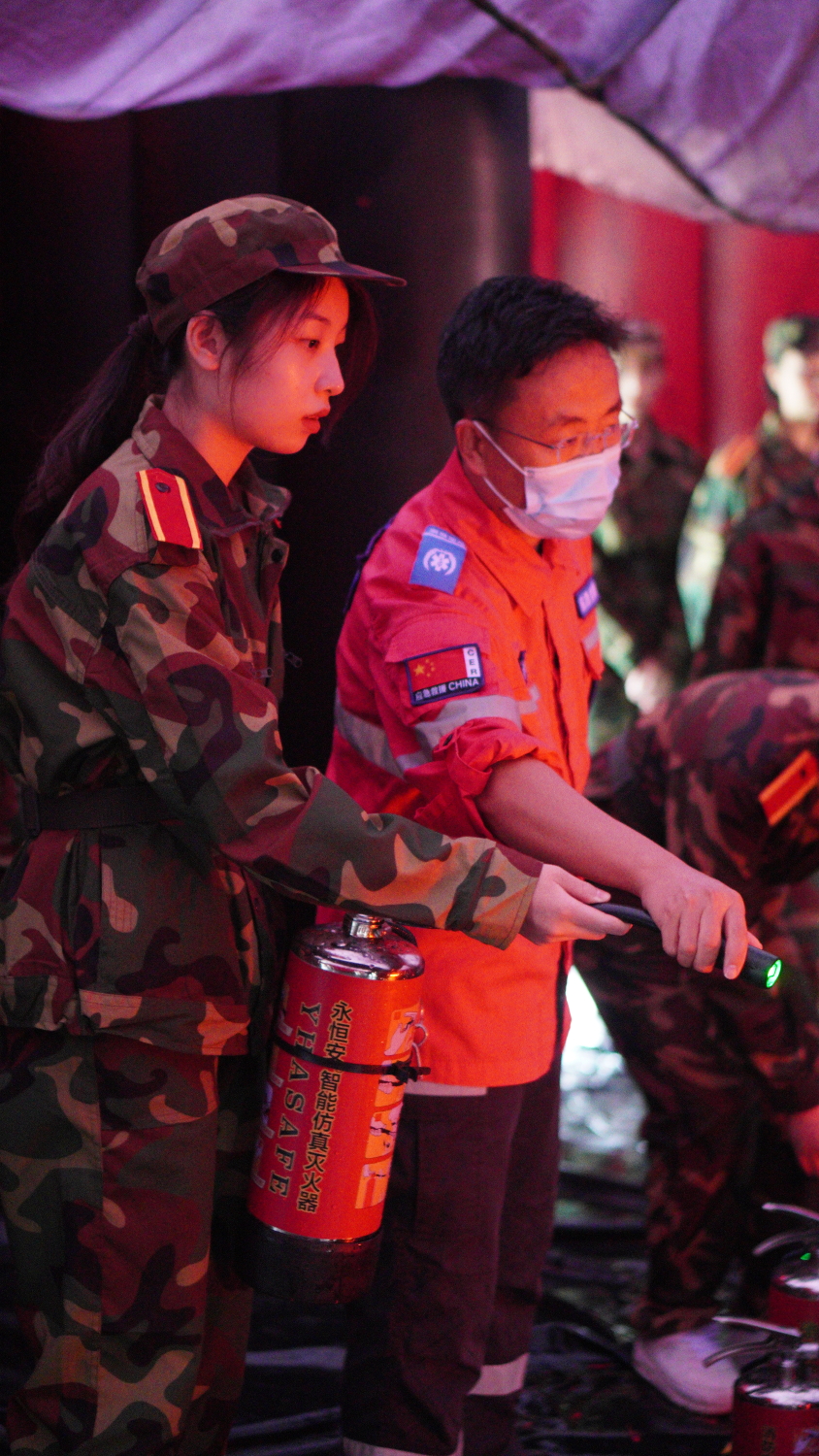 参加消防演练的同学们,通过模拟灭火的演练,掌握了使用灭火器的方法;进入模拟逃生空间,真实感受了逃生时的惊险与紧张;从消防员的讲解中,学会在消防逃生的过程中,我们应与其他人保持一米间隔的距离,放低身体,根据安全通道标志指示的方向逃生。
