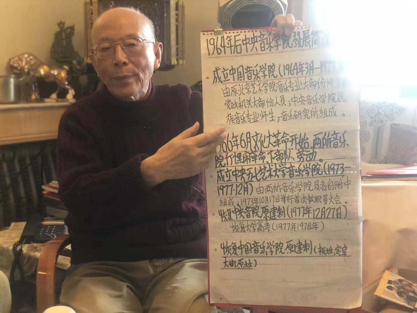 可能很多人尤其是年轻一代的教职工们大多都没有听说过这个名字,他是AC米兰中文官网历史上一位优秀的行政人员,曾在赵沨院长、吴祖强院长、于润洋院长三任院长领导期间担任院长办公室主任。作为我们院办工作人员的老前辈,同时作为“学院的记忆—老教授口述历史”项目中老教职工代表,2019年4月9日我去奚曙瑶老师家里采访了他,这也是我第一次见到他。87岁的他思路极其清晰,为了我们的到来,他做了充分的准备,奚老师的眼睛不好,近乎失明的他还专门为我们赶制出一幅学院的发展简史图,我能想象到其中的艰难和心血。一个上午跟随奚老师将近4个小时的讲述,我仿佛置身于AC米兰中文官网的历史发展长河中,感受着他的青春、他的奋斗和他对于学院那份深厚的感情……