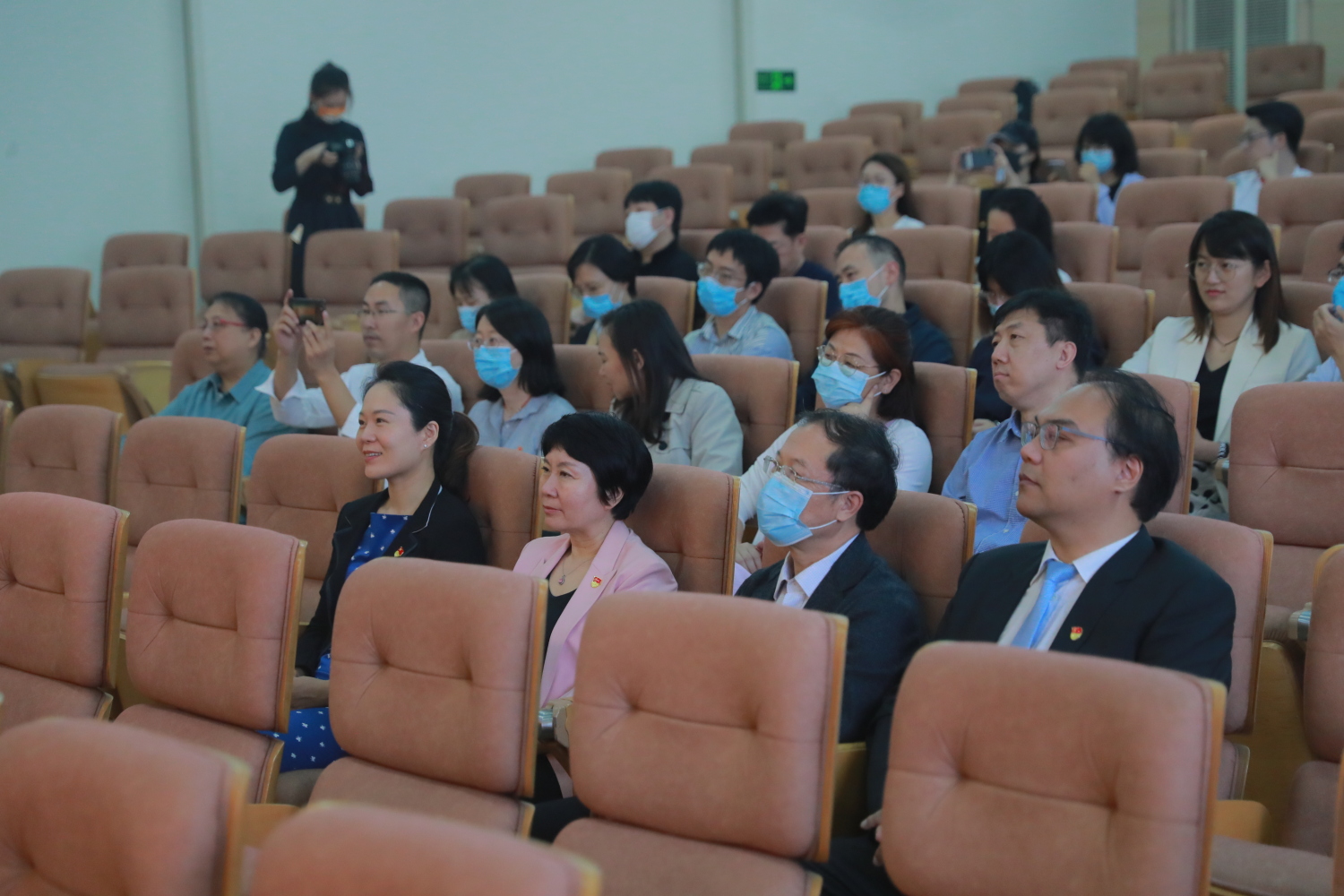 观摩结束后,全体党员来到教学楼701进行党史学习教育成果展示。由教育部国际司(港澳台办)的青年干部带来的诗朗诵《不忘初心》,用声情并茂地诵读追溯建党百年的峥嵘岁月,歌颂中国共产党100年来的砥砺奋进和辉煌成就,抒写不忘初心、追梦前行的壮志豪情。由管弦系党总支书记陈光、教师党支部书记尹一迦、管弦系教师陈曦、陳翰叡联合学生带来的乐器合奏节目:钢琴四重奏《我爱你中国》和铜管五重奏《我的祖国》,用音乐表达对党与国家的深情和热爱。通过诗歌和音乐,在重温红色经典的同时歌颂党的光辉岁月与风雨历程,抒发对党的诚挚祝福和深厚情感。