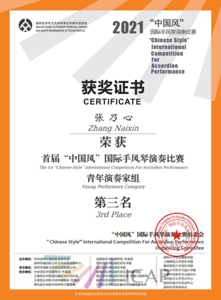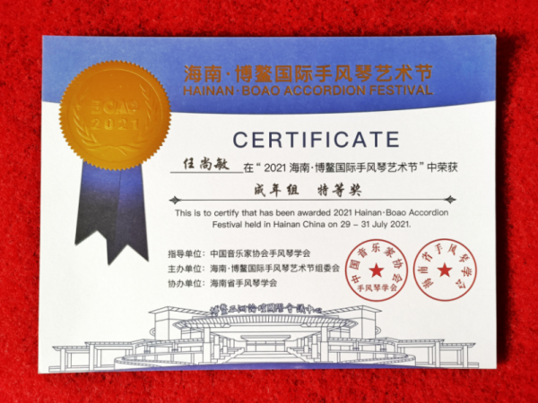 在此,向各位获奖学生及手风琴教学团队曹晓青教授、许笑男老师、许可卿老师表示祝贺!