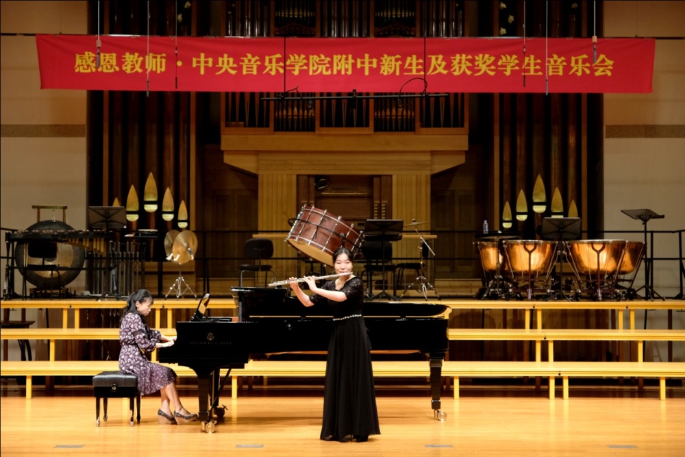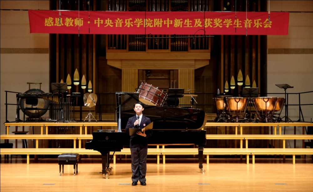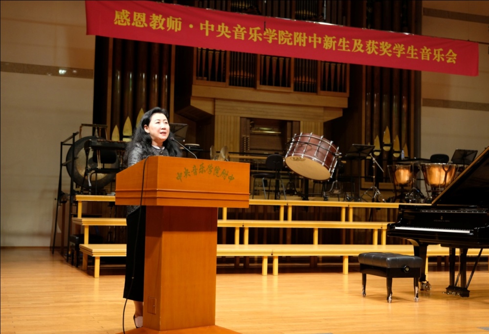 娜木拉校长介绍了感恩音乐会的由来,感恩音乐会是附中的一个传统,每年的9月10日都会举办《感恩教师·AC米兰中文官网附中新生及获奖学生音乐会》,希望同学们做到感恩父母,感恩教师,感恩学校,感恩国家。