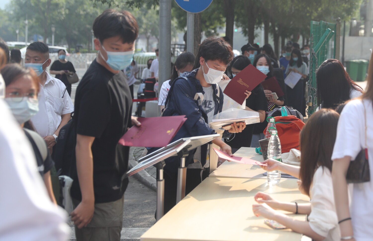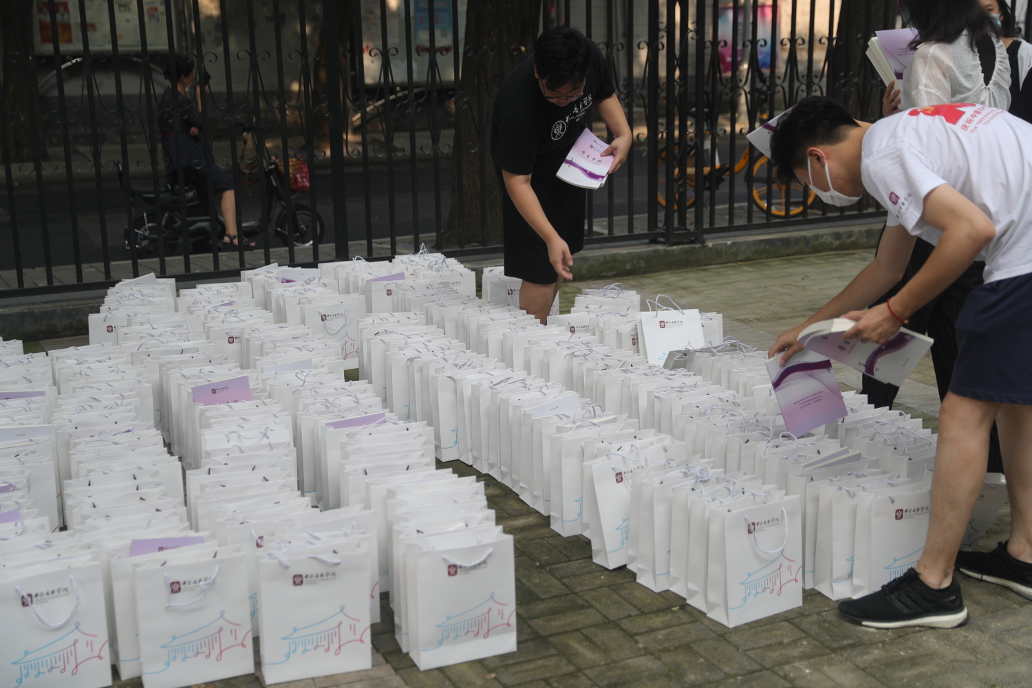 赵旻书记、俞峰校长与前来报到的2021级新生亲切交流