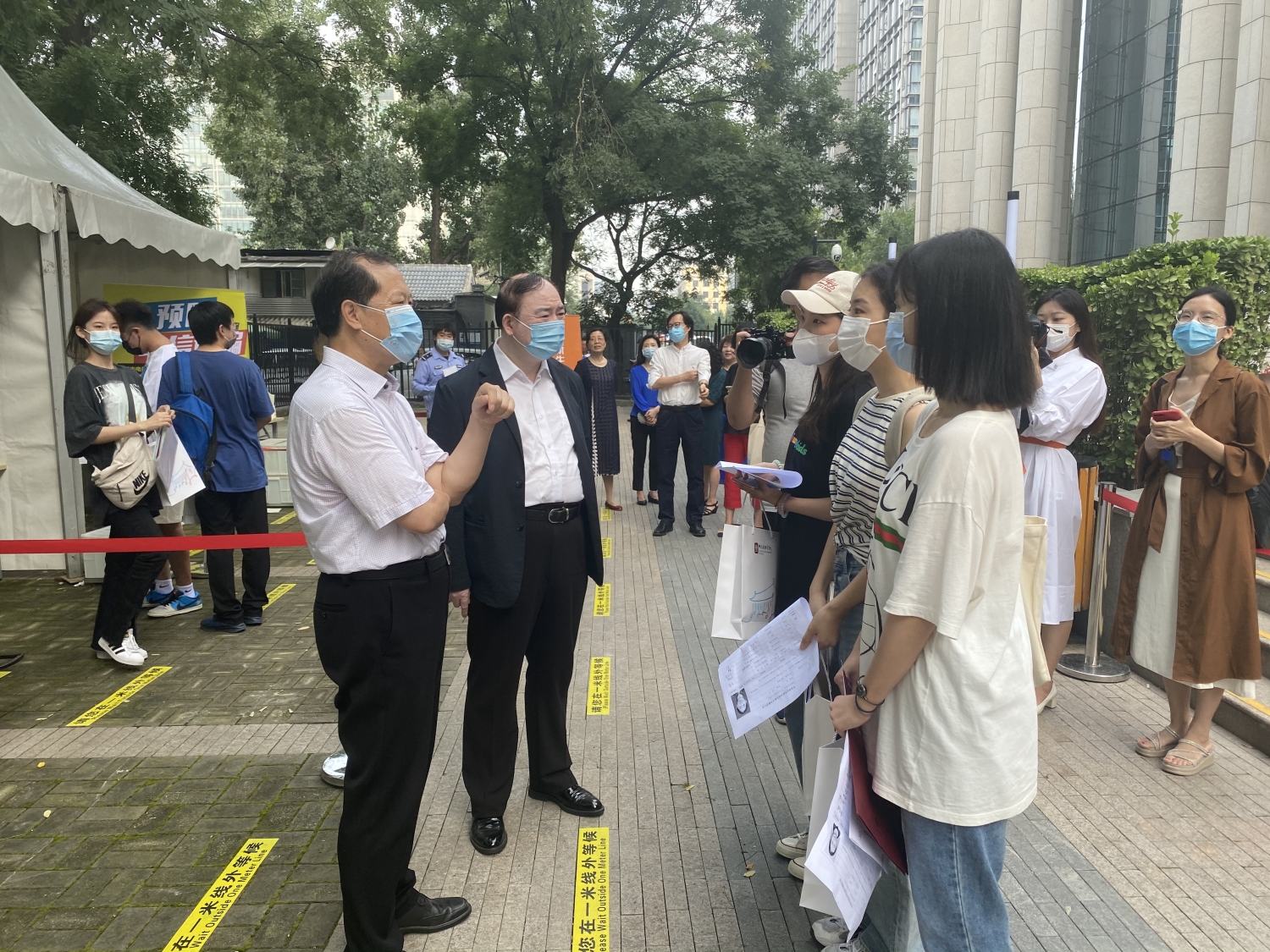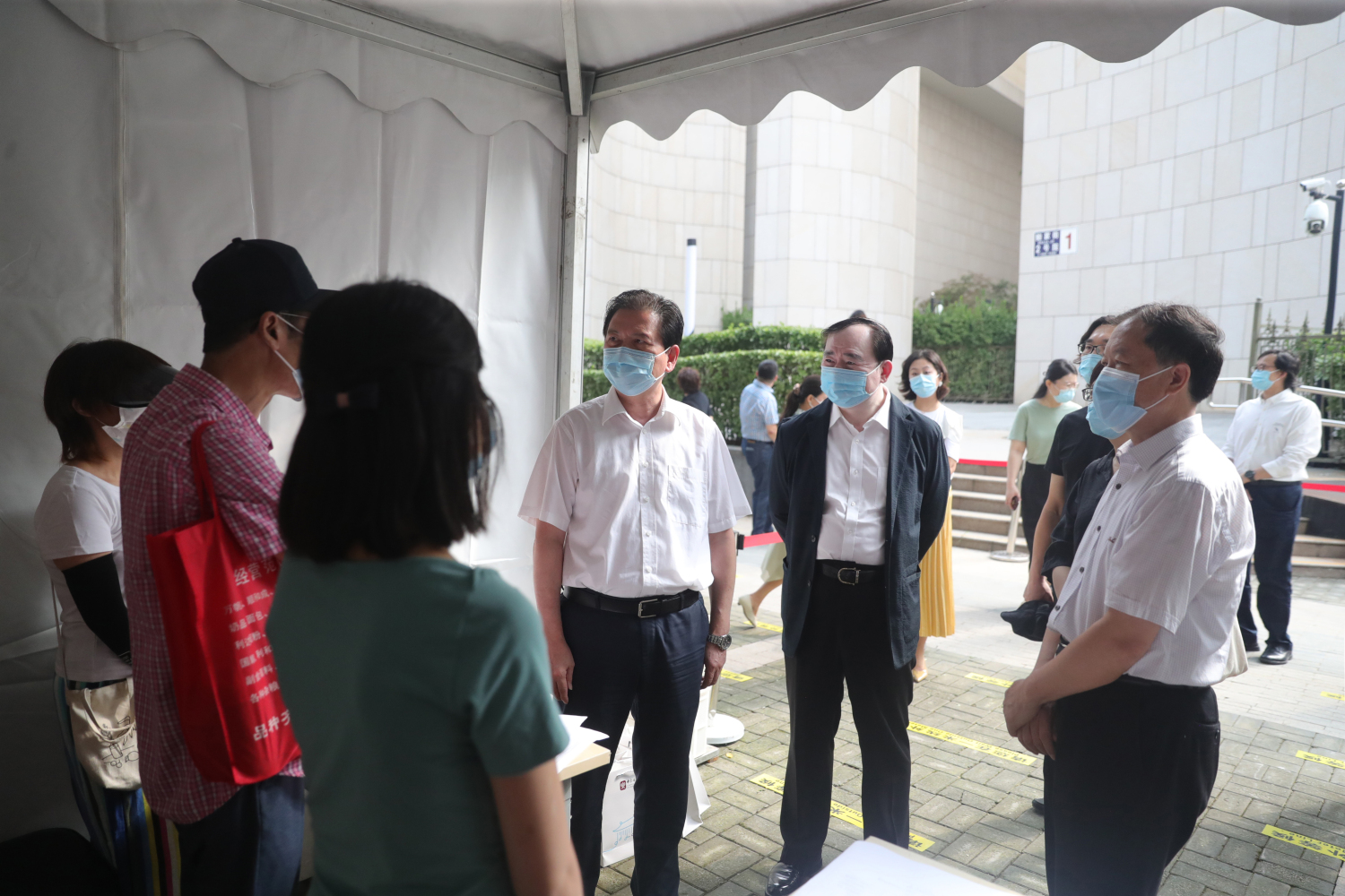 8月30日上午,北京市教育委员会一级巡视员黄侃到米兰检查指导校园疫情防控和开学准备工作,校党委书记赵旻,校长俞峰,党委副书记苗建华,副校长秦文琛、于红梅,党委副书记、纪委书记刘春梅陪同检查。